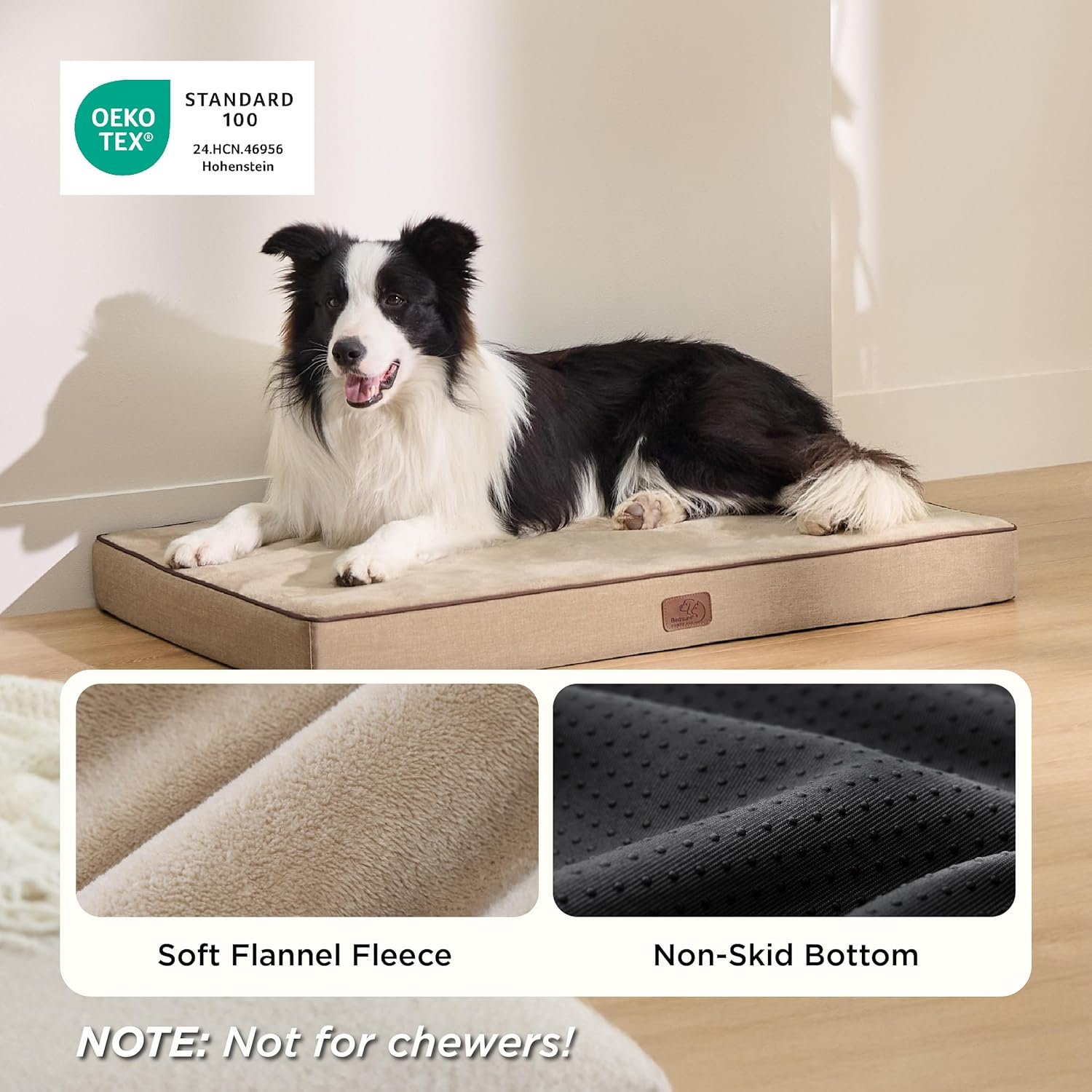 Made with OEKO-TEX Standard 100 (24.HCN.46956) approved flannel fabrics, this dog bed offers ultimate coziness, and its non-slip bottom keeps the pet bed securely in place on any floor surface