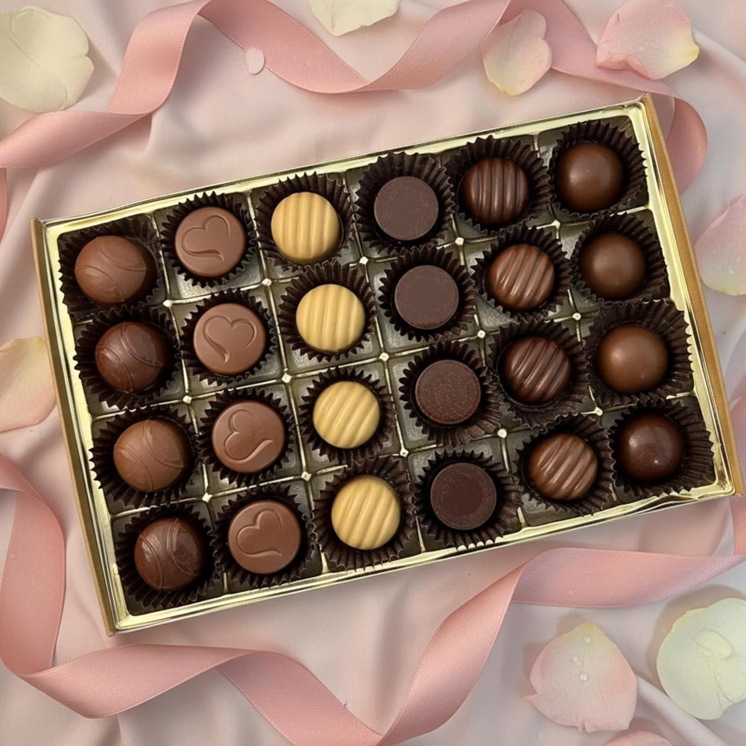 * An irresistible mixture of our most delicious favorites wrapped in Tom’s rich milk and dark and white chocolates. * 24 pieces: Hazelnut, Peanut, Almond, Pecan, Capuccino, Mocha, Passionfruit, Pineapple, Mango *Replacements may be made depending on candy availability. * Made Tom’s way, with no added preservatives, in our Seattle, WA chocolate kitchen. * To ensure the highest quality, heat sensitive candies are shipped with ice packs and in insulated packaging during warmer months.