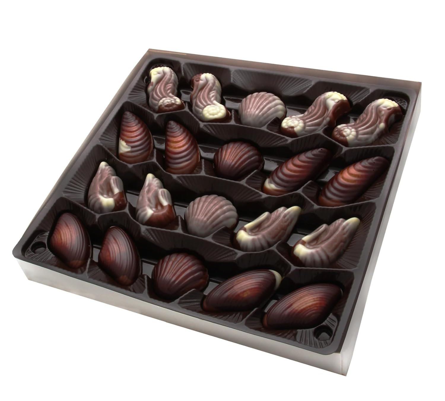 Belgium Chocolates 20 Piece Artisanal Seashell Truffles, Hazelnut Filling. 8.82oz