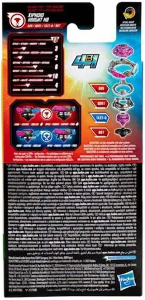 The battle has taken to the next level with the unique Beyblade Burst QuadStrike Xiphoid Knight K8 Pack! With Beyblade spinning tops for 8-year-old boys and girls, kids can trigger fierce strikes and defeat their opponents with more intense clashes