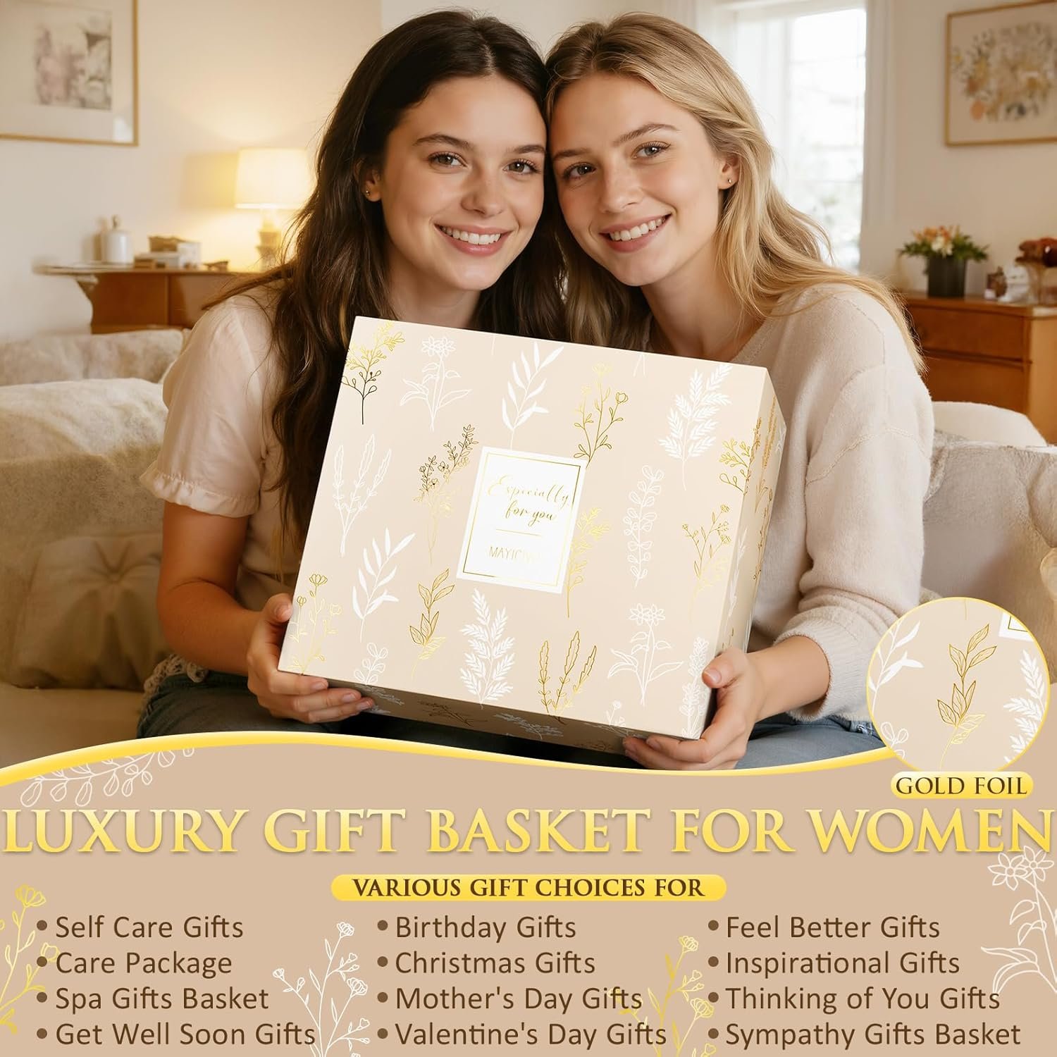 THOUGHTFUL GET WELL SOON GIFT BASKET FOR WOMEN: A heartwarming gift box that delivers love and strength, sends her care, solace & encouragement at anytime. MAYICIVO Self Care Spa Gifts Birthday Gifts for women her mom friend grandma girlfriend is filled with warmth, turning every unwrapped moment into a gentle embrace of hope & comfort for her. Perfect as get well soon gifts, after surgery gifts, cancer care gifts, surgery recovery gifts, sending hug gifts, feel better gifts inspirational gifts