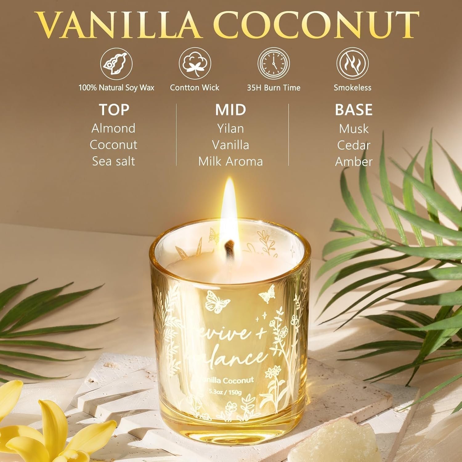 5.3OZ VANILLA COCONUT SCENTED CANDLE: A cute vanilla coconut scented candle in this self care kit birthday spa gift baskets for women is made of pure plant essential oil & premium natural soy wax, can burn evenly up to 35 hours smokelessly & safe for family. Different from other normal candle, ours allows the light flowing through the pattern like gold and creates a magical warm glow with a unique laser-etched hollow-out design. Great for meditation, yoga, dance, spa, work, or as Christmas decor