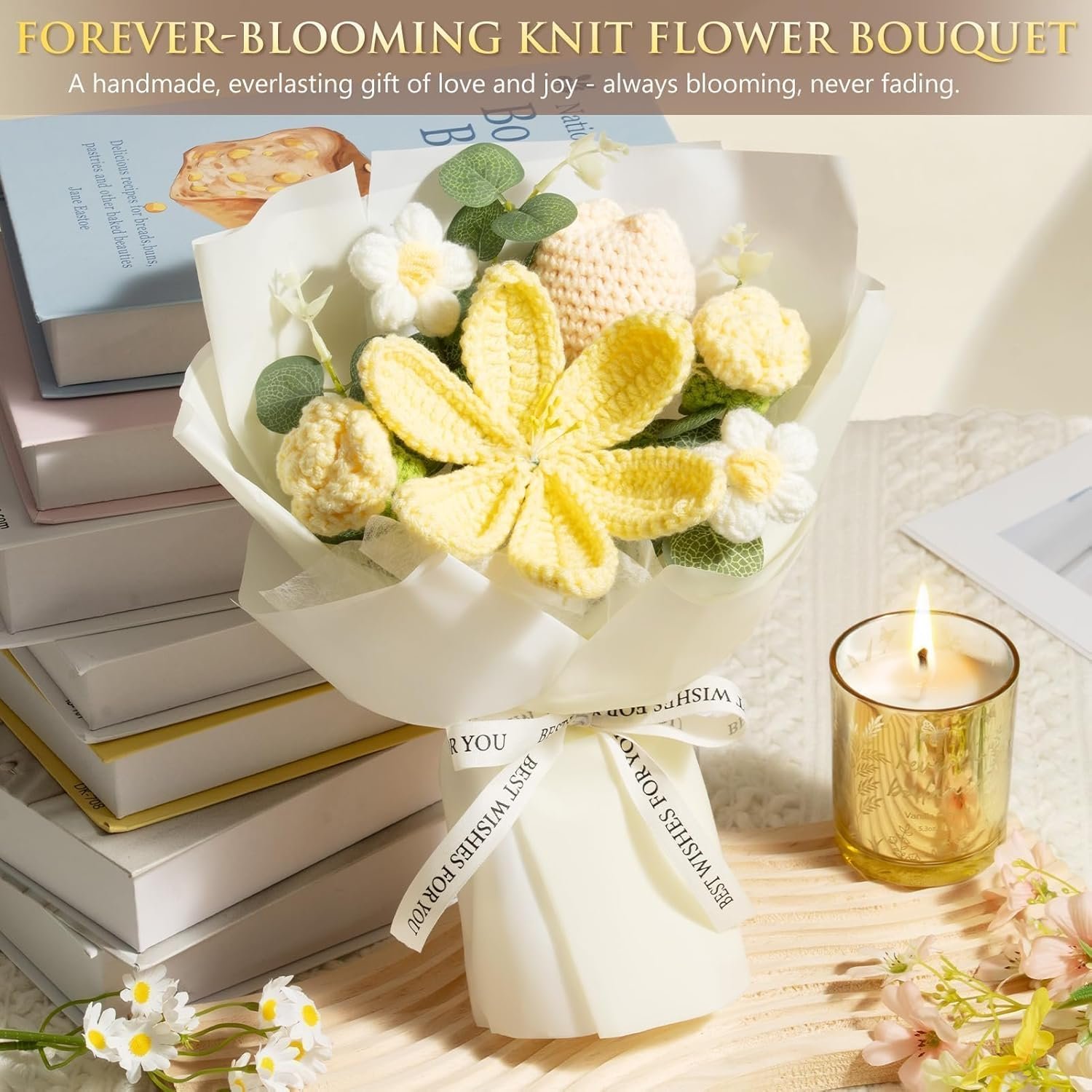 HANDMADE CROCHET FLOWER BOUQUET: This crochet flower bouquet consist of roses, tulips and puff flowers – all knitted from velvety soft cotton yarn, offering soft and comfortable touch, never wilts or fades – blooming beautifully, forever and always. Can easily adjust the shape with built-in flexible wire core, great for putting in a vase as decor, or as crochet gifts. Perfect as self care package sympathy gift baskets thinking of you gifts for women best friend teacher coworker to express care