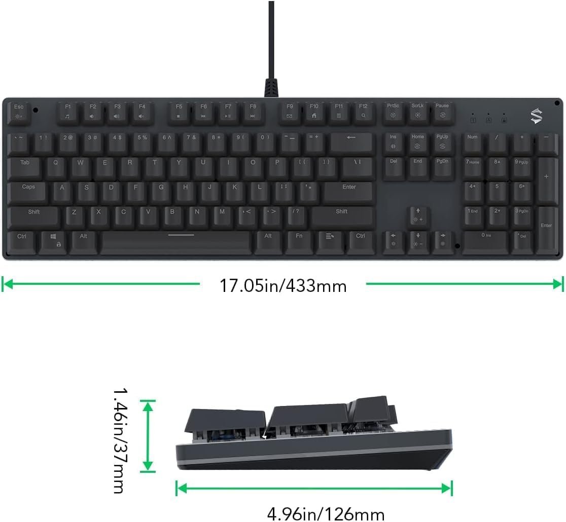 【Full Size 104 Keys】Wired keyboard featuring conflict-free 104 keys with arrow keys, number keys, featuring 12 multimedia key combinations and Win-Lock function for efficiently gaming or working.
