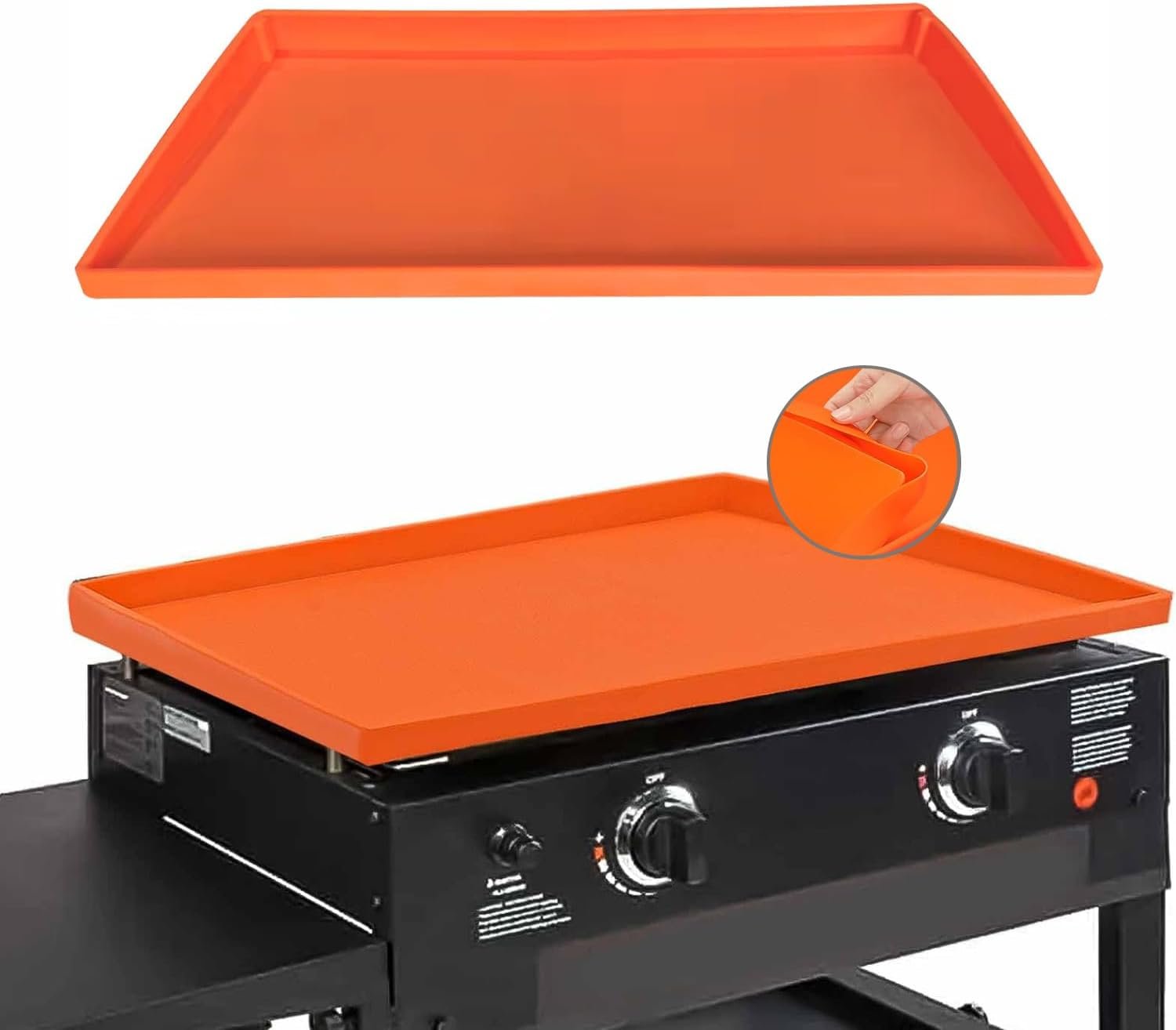 【Food-Grade Silicone】 Made from 100% food-grade silicone, durable for any weather. The foldable silicone mat makes it easy to store when using the griddle.