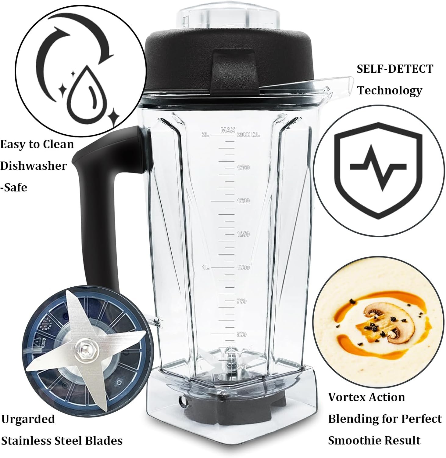 【64oz Large Capacity】 2000ml, ideal for large batches, household use and commercial use. Perfect for making smoothie, puree, ice crush, shakes.