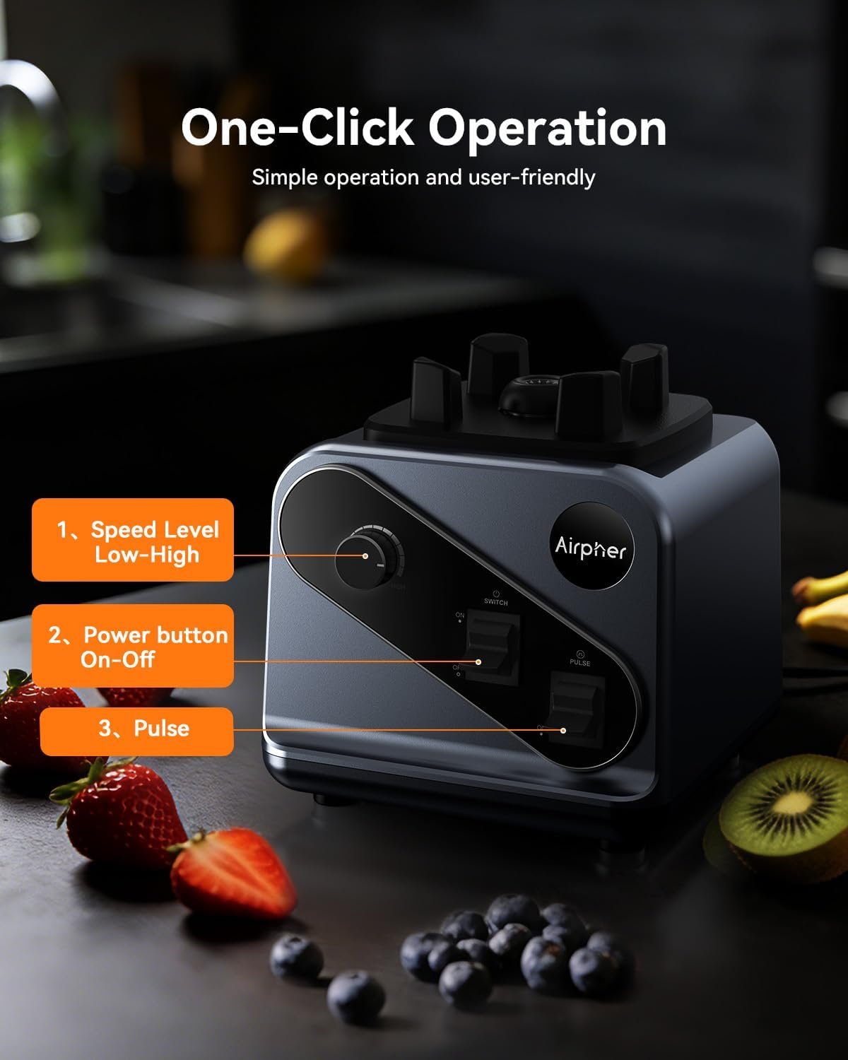 ✨[Professional-Grade Power for Silky Smoothness] Wake up to a perfect blend every morning! The Airpher blender has a powerful 2000W motor that can easily crush ice, freeze fruits, vegetables and nuts. This smoothie blender has a powerful power of 35,000 rpm, making the drinks taste even and say goodbye to graininess, easily improving the quality of family meals. Throw the food directly into the blender. After a few seconds, you will get a cup of smooth and delicate drink that will instantly wake up your sleepy body.
