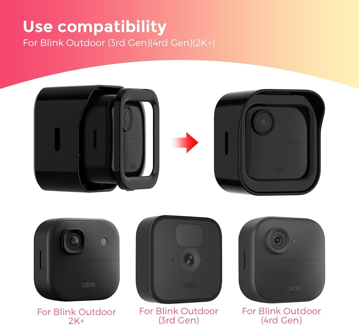 Designed for Blink Outdoor Series: Precision-molded exclusively for Blink Outdoor 4 (4th Gen), Blink Outdoor Camera 2K+, and Blink Outdoor (3rd Gen). The custom fit ensures the camera stays securely in place without rattling. (Note: Not compatible with Blink XT, XT2, or Blink Mini).