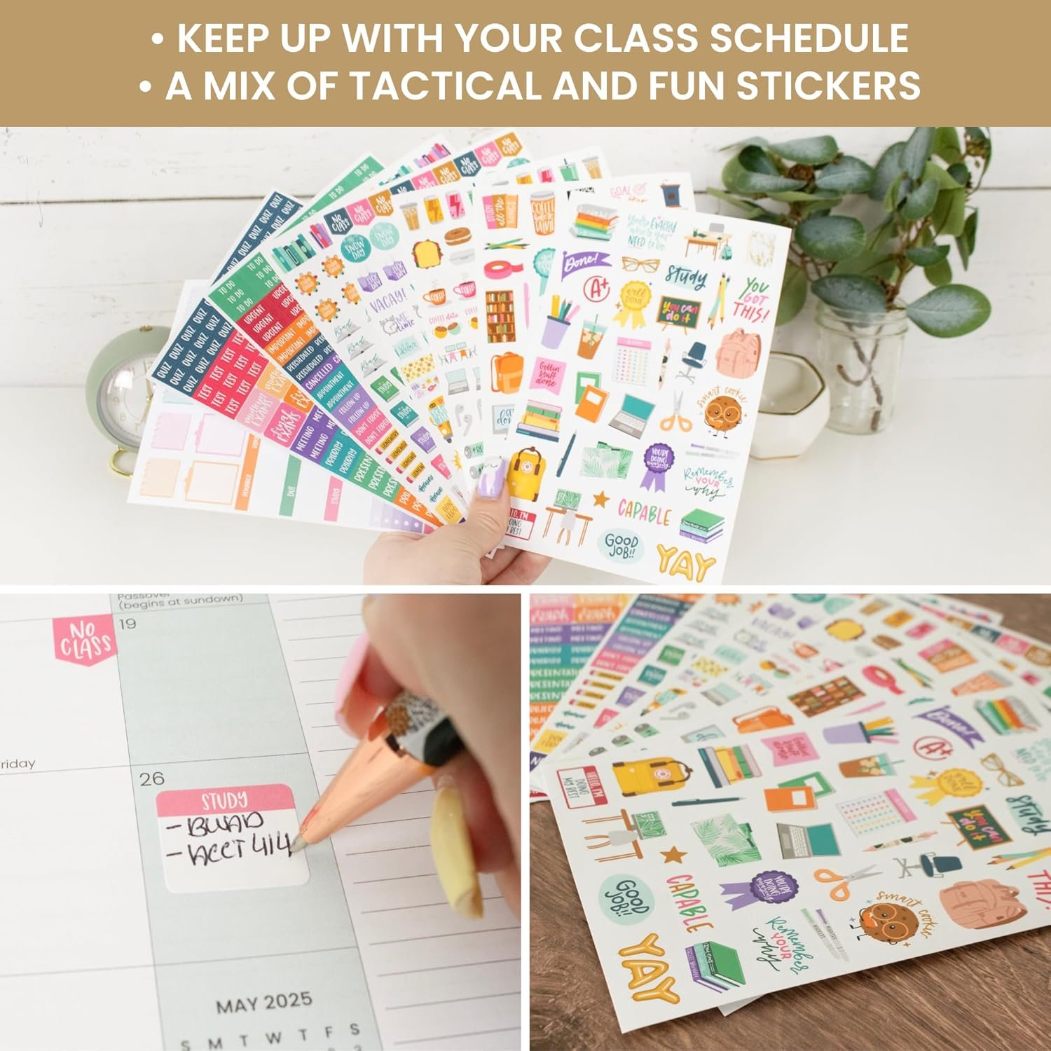 Customers appreciate the planner stickers’ colorful designs and find them perfect for academic planning, noting they stick well to paper and are easy to remove from the backing sheet. They like the variety and quality, with one customer mentioning they complement writing journals nicely. The stickers receive mixed feedback about their quality.