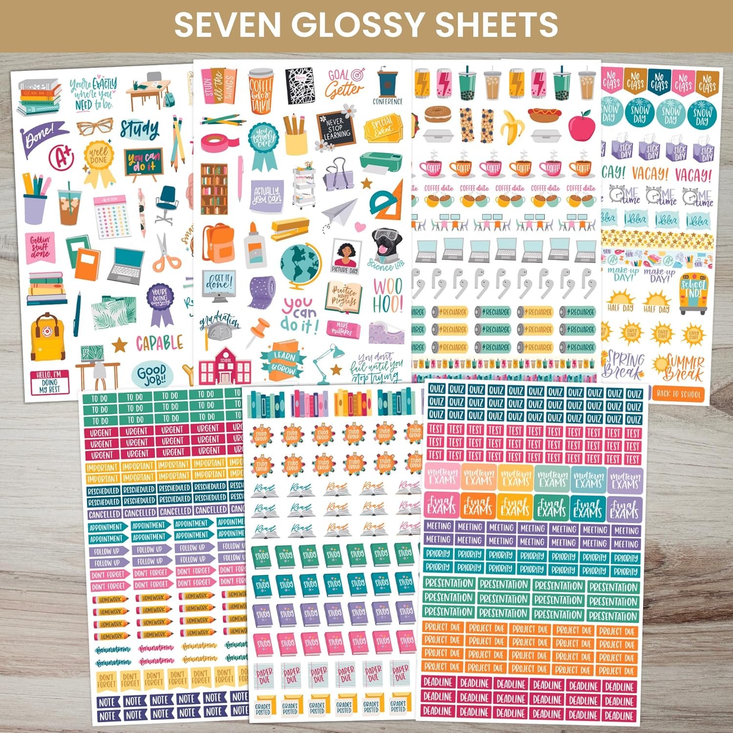 7 sheets are glossy, 1 sheet is matte to write on. A blend of practical, decorative, and inspirational elements designed for students of all ages– from middle schoolers to graduate students. Great for homeschool students too!