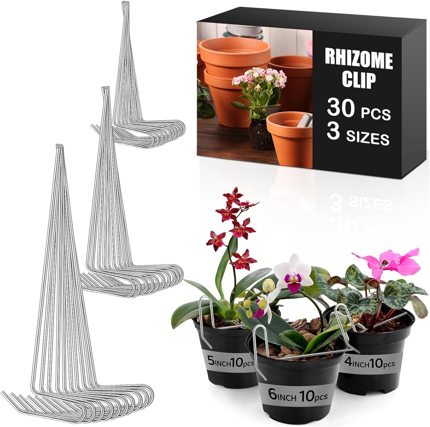 3 Sizes, Multiple Quantities: you can get 3 different sizes of orchid rhizome clips, 4 inches, 5 inches, 6 inches, 10 each, a total of 30 pieces, different sizes for you to choose, to meet your daily home gardening work needs