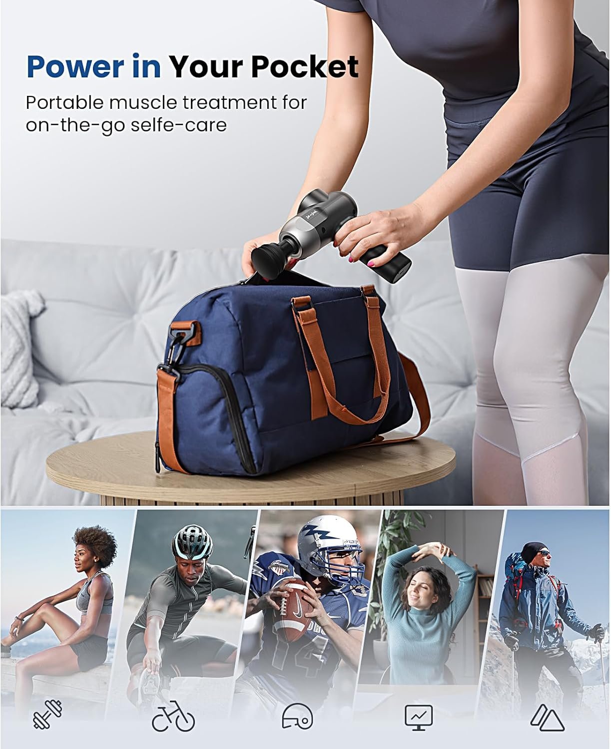 SURPRISINGLY POWERFUL & DEEP PERCUSSION: Don’t let the compact size fool you. This compact high-performance device delivers power beyond its size. With a 10mm amplitude and max 44lbs stall force, it provides professional-grade deep tissue massage that won’t stall, even when pressed hard against stubborn muscles like glutes or quads.