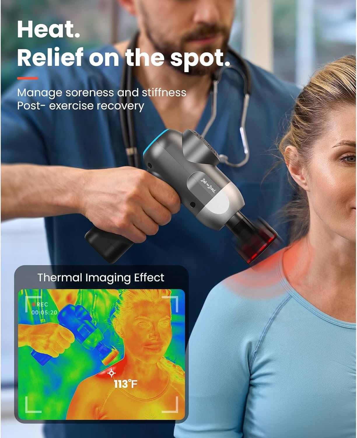 SOOTHING HEAT THERAPY & INSTANT RELIEF: Experience game-changing recovery with our specialized heated head that warms up quickly to melt away tension. Unlike standard massagers, the combination of heat and percussion penetrates deep to loosen stiff knots, alleviate everyday neck stiffness, and accelerate recovery after workouts.