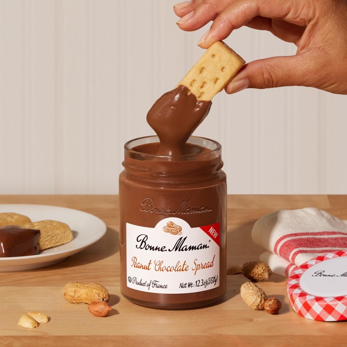 Bonne Maman’s Peanut Chocolate Spread offers the perfect balance of rich chocolate and lightly roasted peanuts. Made of simple ingredients and filled with love. Each spoonful delivers a smooth, creamy texture that’s both indulgent and satisfying. Perfect on toast, pancakes, or straight from the jar!