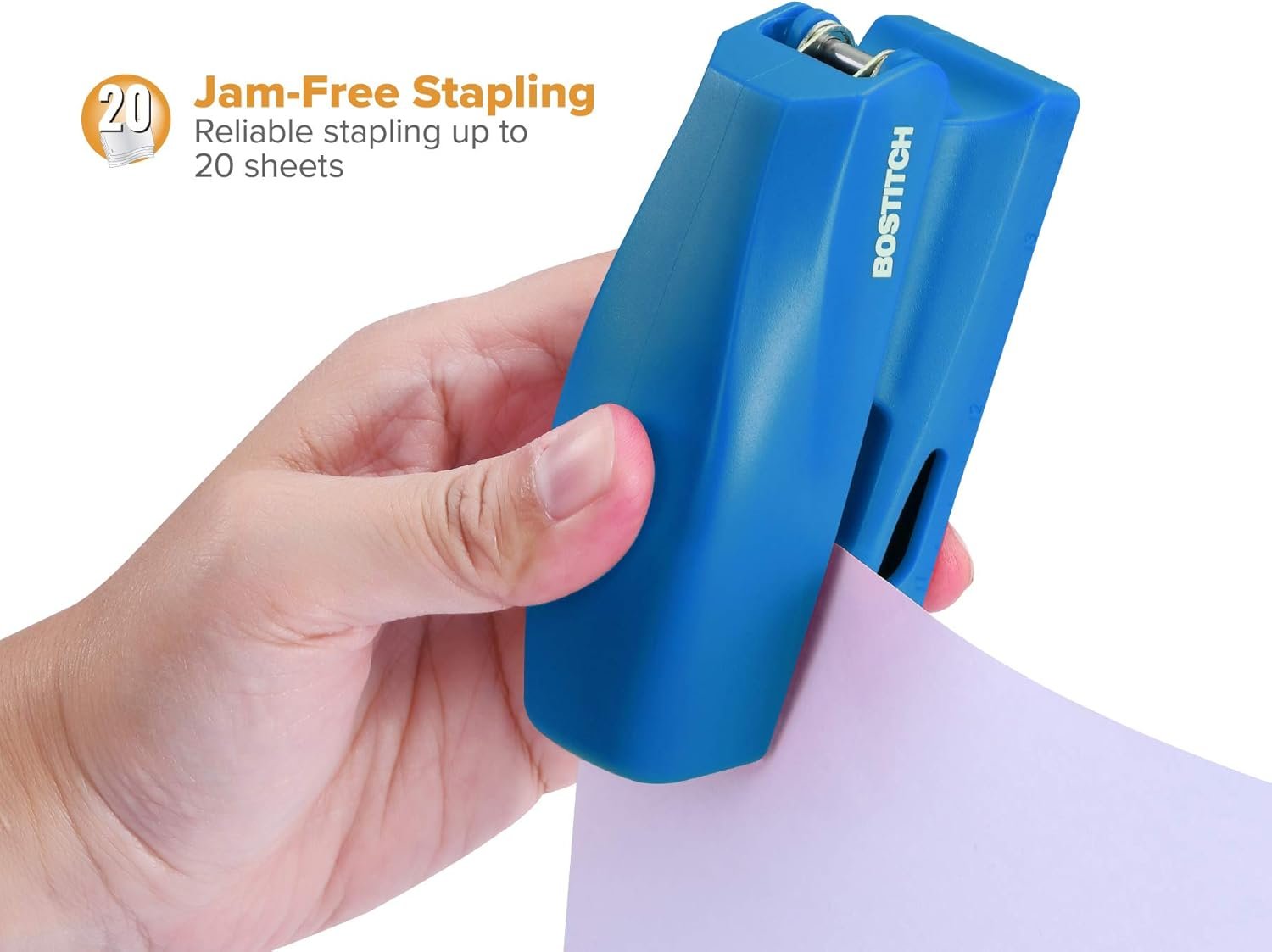 Compact, half-strip design staples up to 20 sheets
