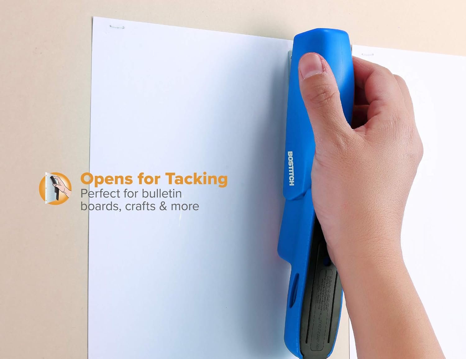 Opens 180ยบ for bulletin board tacking and craft use