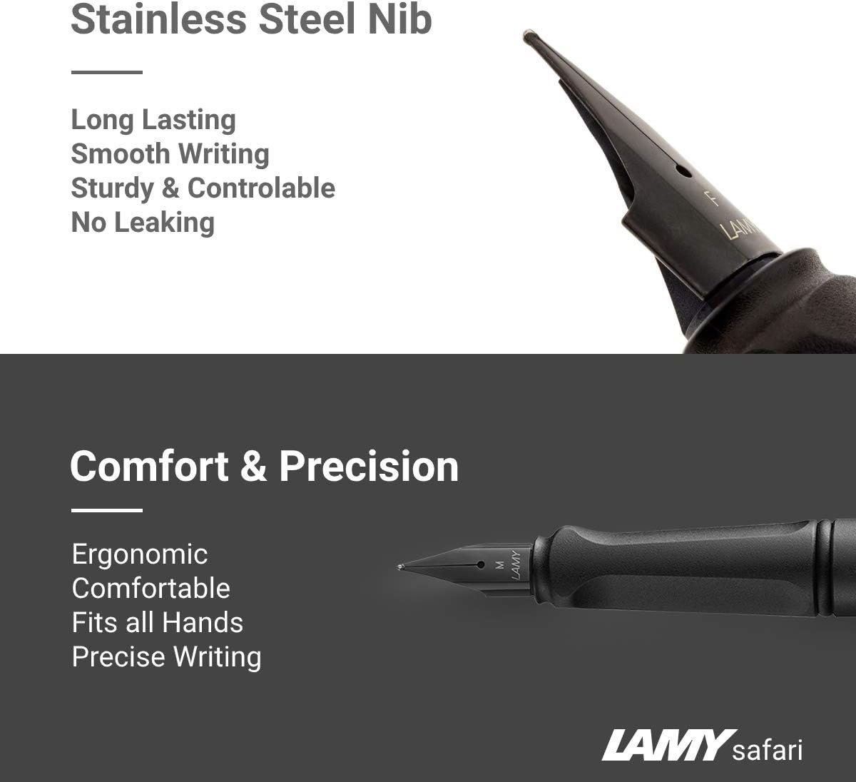 ποΈ Fine Nib: Sturdy, long-lasting stainless steel nib for pleasant and even ink flow. Designed carefully to avoid scratching the paper while having full control of your Lamy fountain pen. Each pen is tested before leaving the factory to ensure its quality therefore your pen may have a little bit of ink left on the nib when you receive it.