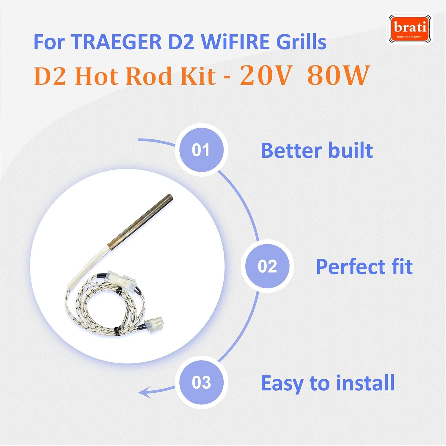 Hot Rod Ignitor Kit Replace KIT0255 for Traeger Wood Pellet Grills with D2 Direct Drive and WiFIRE Technology (20V hot Rod) Replacement DC Hot Rod