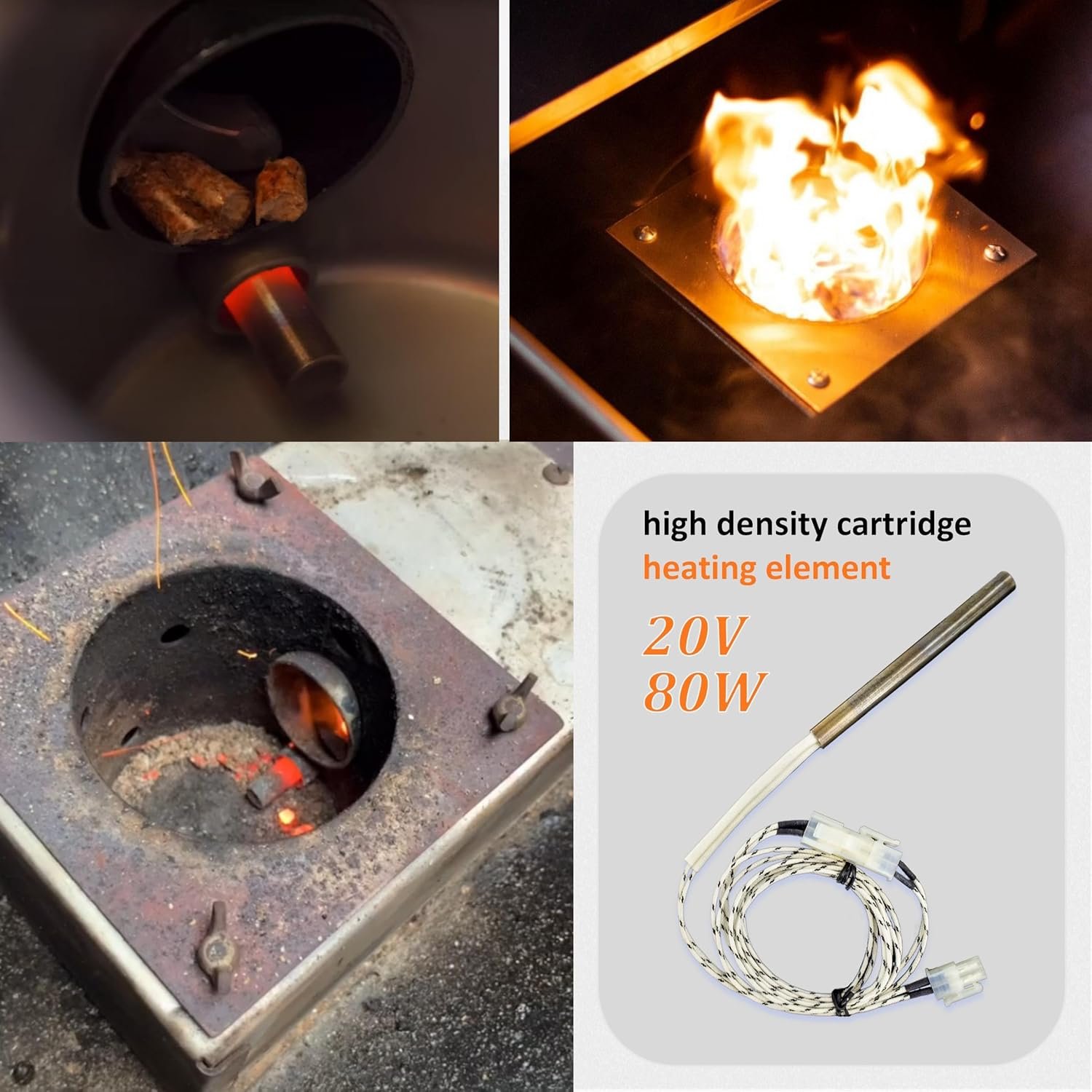 【Install Tips】:Located at bottom of firepot, ignites the hardwood, making starting your grill as simple as flipping a switch, for proper installation, only 1/8 to 1/4 inch should be showing in firepot