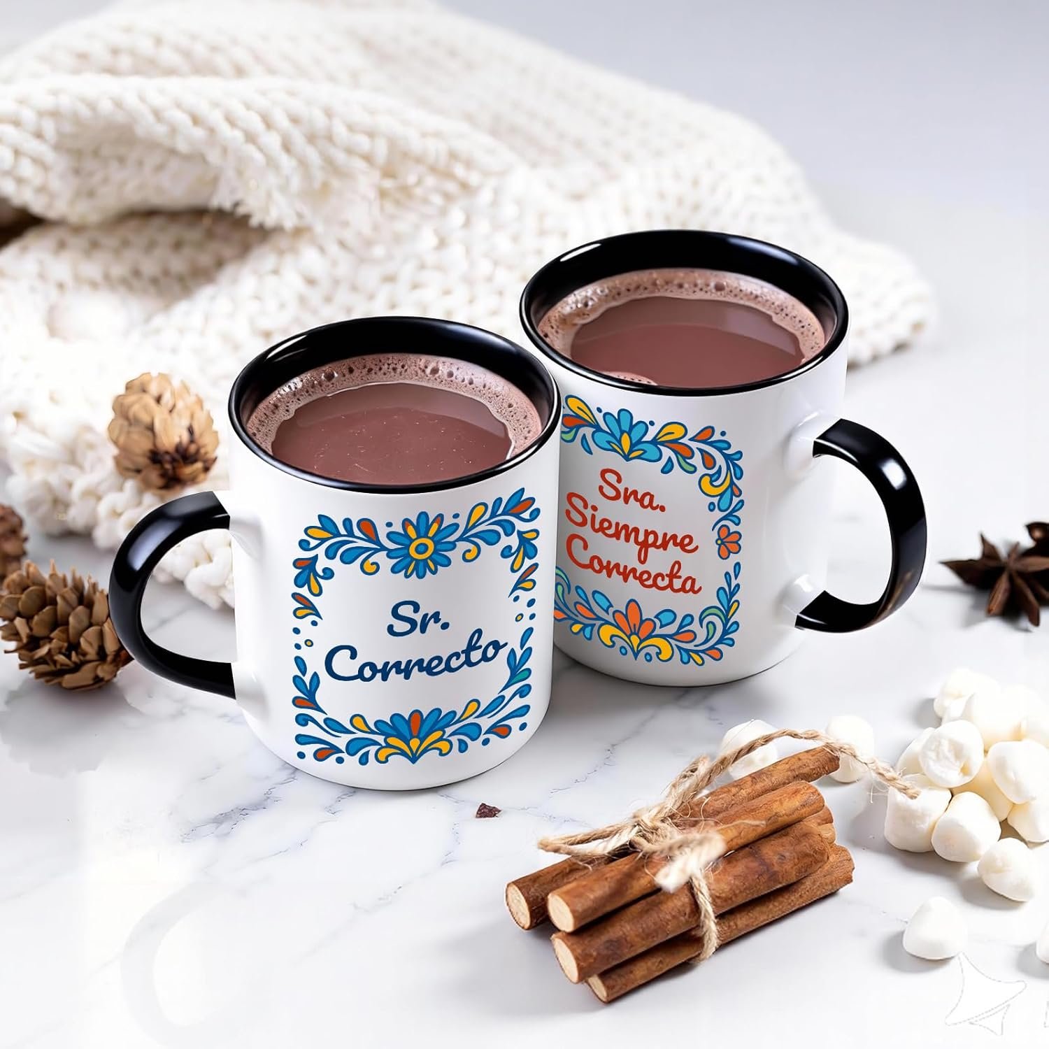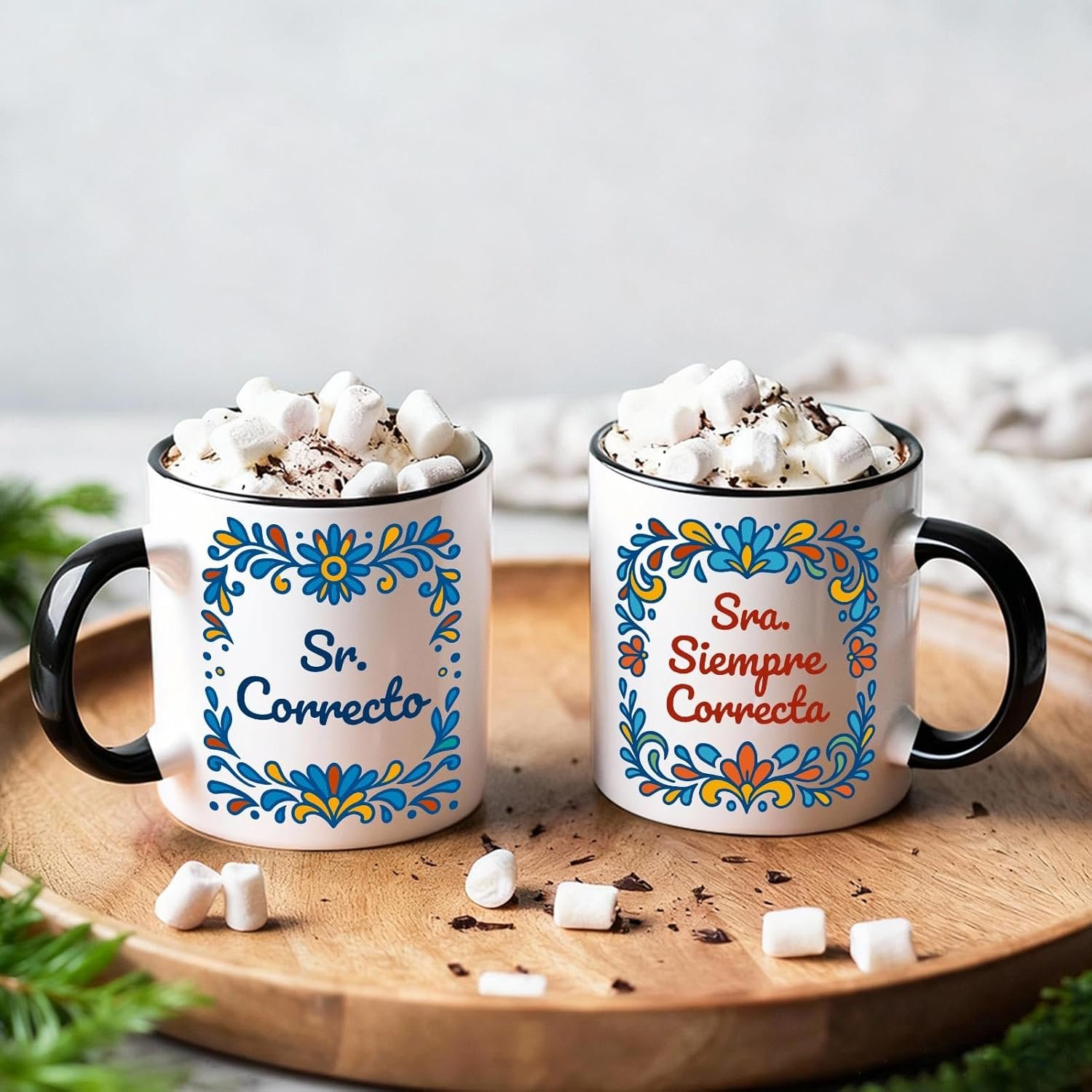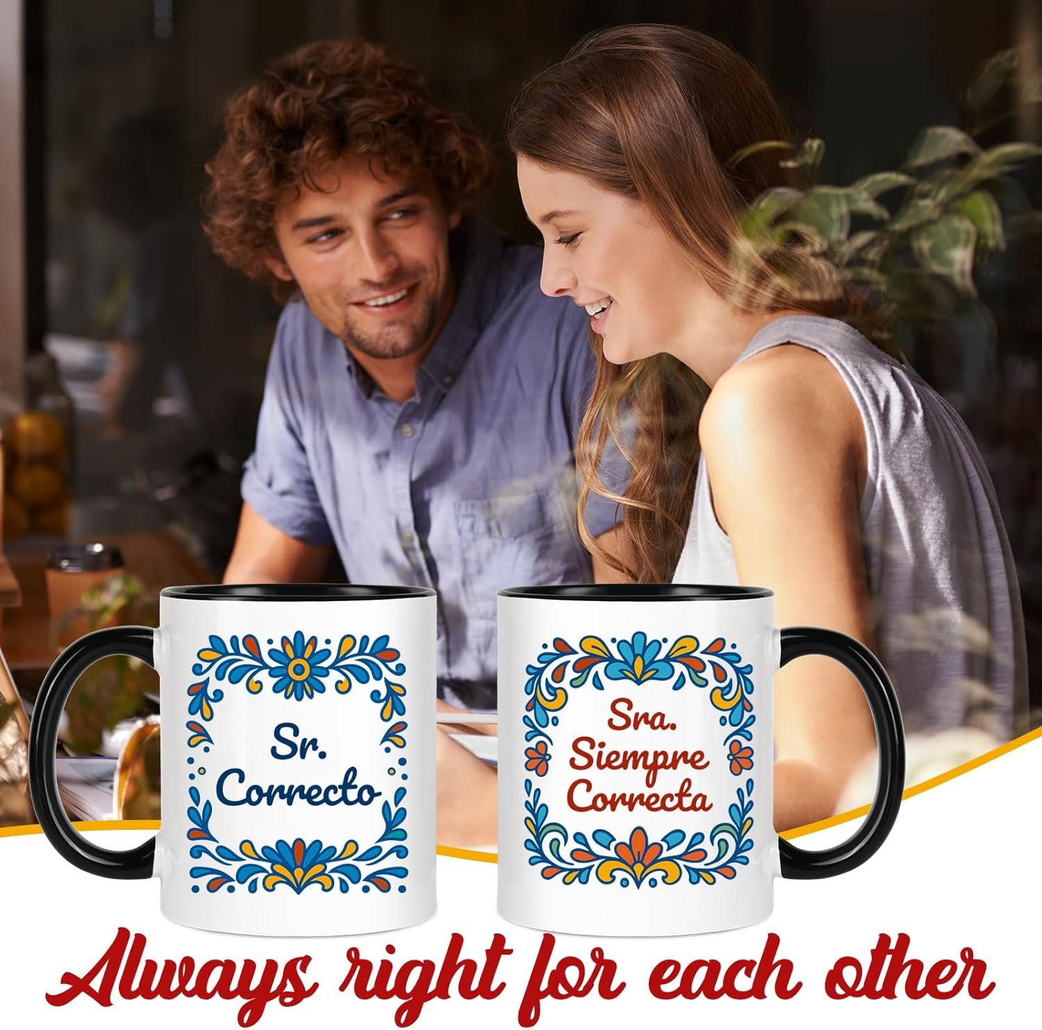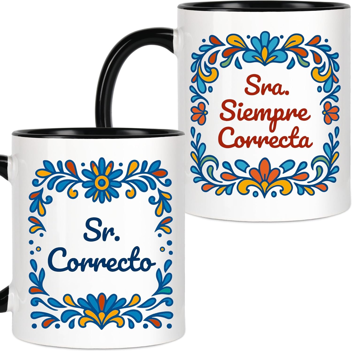 Mr Right Mrs Always Right Humor: This Spanish couple coffee mug set features “Sr. Correcto” and “Sra. Siempre Correcta,” a playful way to celebrate love, laughter, and the truth every couple knows.