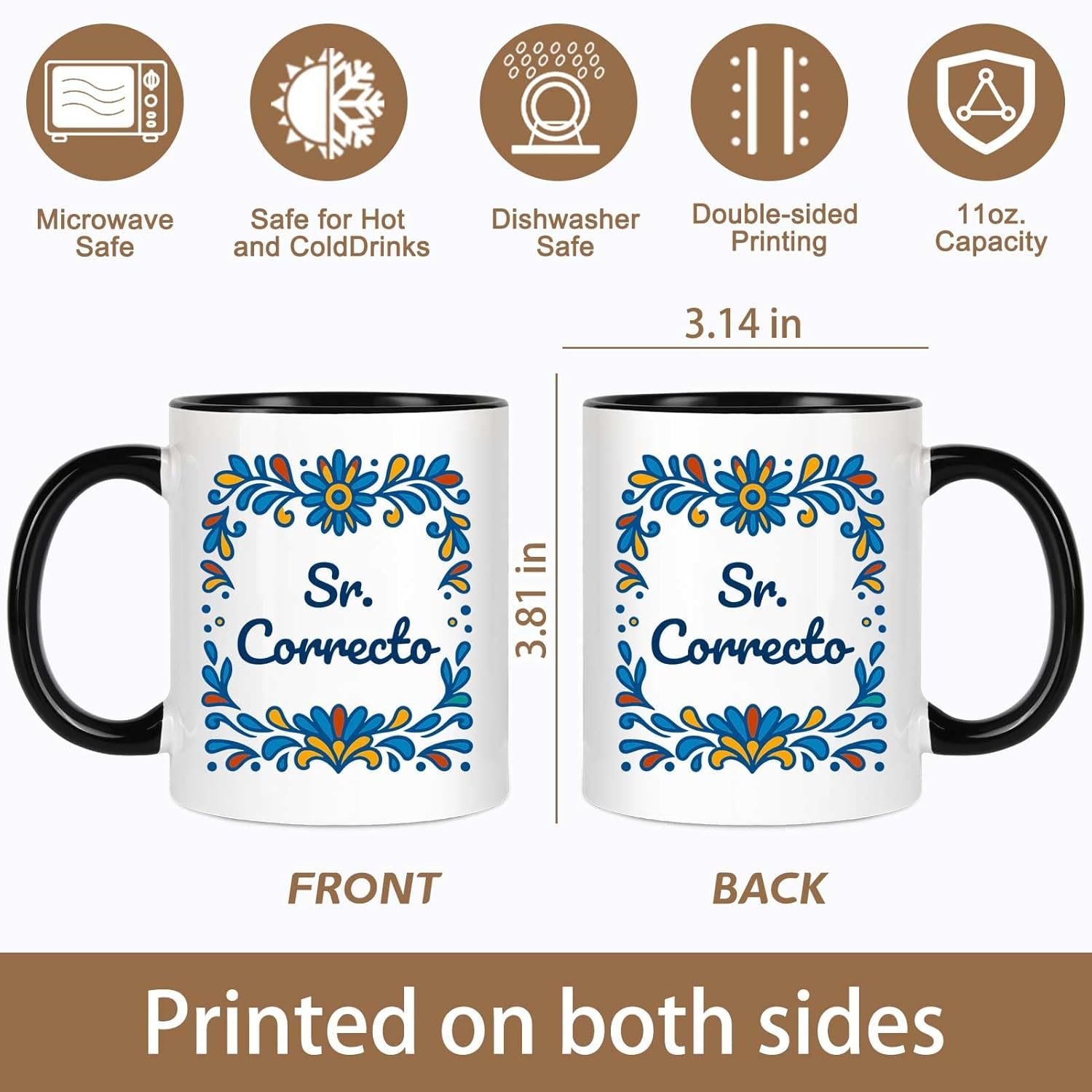 Durable 11oz Ceramic Cups: Made from high-quality ceramic, each 11oz coffee mug is comfortable to hold and perfect for coffee, tea, or hot chocolate—microwave and dishwasher safe for daily use.