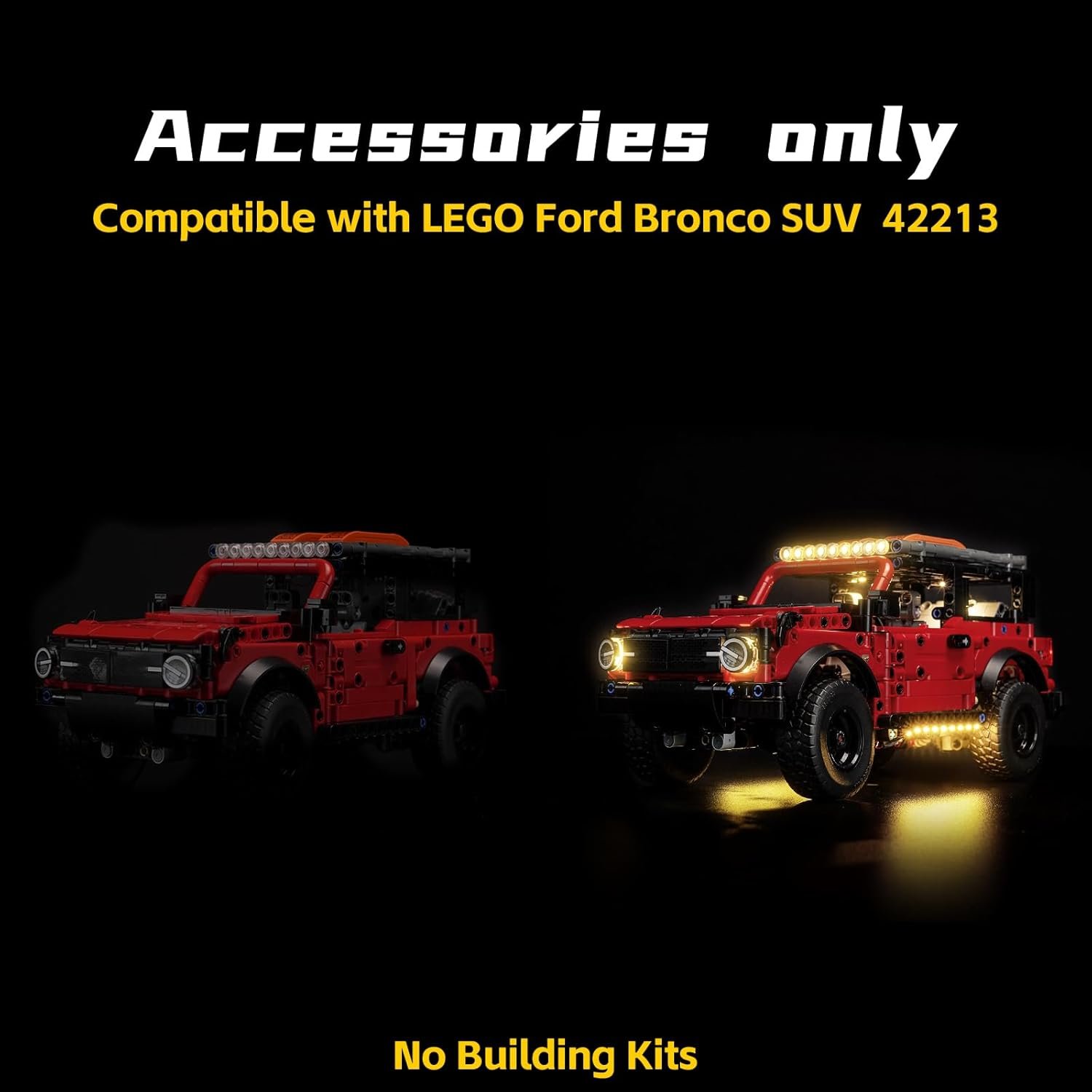 Update Your Model: It’s a fun idea to light up your model with our led light compatible with Lego Bronco Ford. Surprising decoration lights will make a static display piece into something more interesting and show more hidden details. You couldn’t miss it