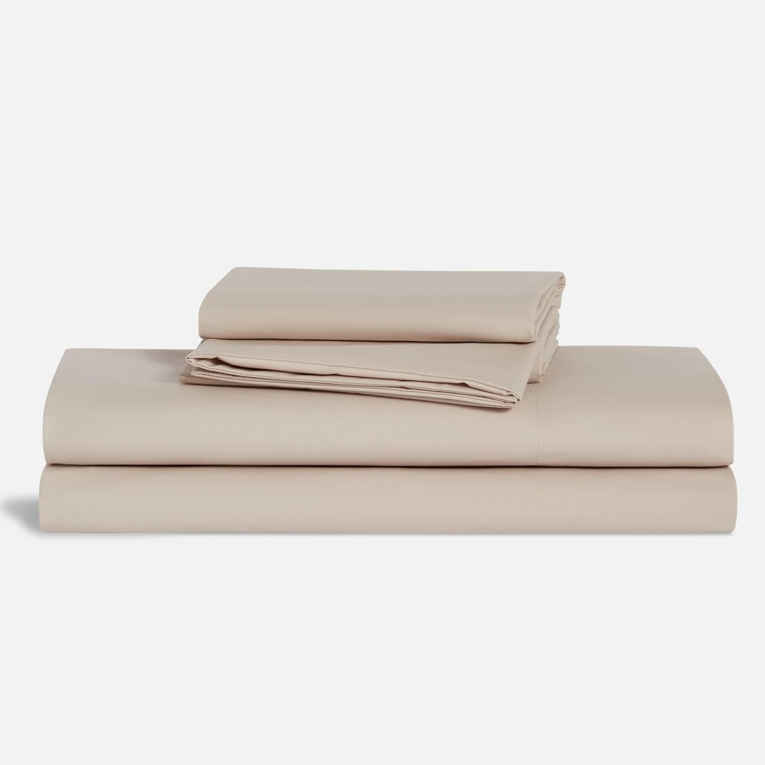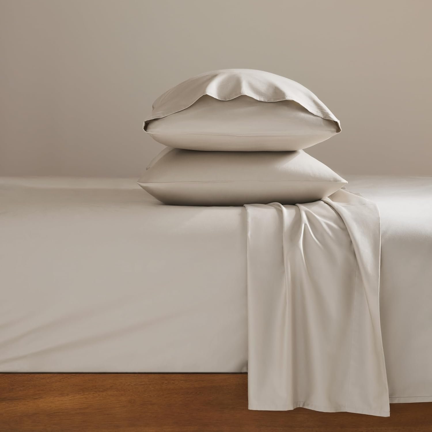 Transform your sleep experience with the Brooklinen Luxury Percale 4-Piece Sheet Set. Crafted from 100% long-staple cotton, these percale sheets offer the perfect balance of softness and breathability, making them ideal for hot sleepers. The 270-thread count weave creates a crisp, cool feeling that provides a hotel-like luxury every night. Designed to improve with each wash, these cotton sheets become softer over time, offering long-lasting comfort without pilling. The OEKO-TEX-certified fabric ensures these sheets are free from harmful chemicals, making them a perfect eco-friendly choice for anyone looking to elevate their bed while caring for the planet. Whether you’re lounging in bed or drifting off to sleep, the breathable, lightweight design of these cotton percale sheets guarantees a restful night. This set includes a fitted sheet, a flat sheet, and two pillowcases, all designed to perfectly fit cotton sheets. Ideal for warmer climates and year-round use, the Brooklinen Percale Sheet Set is a timeless addition to any bedroom. It provides luxurious comfort that stays cool, crisp, and fresh with minimal upkeep. Treat yourself to the luxury you deserve with Brooklinen’s 100% cotton bed sheets. Enjoy effortless care, sustainability, and premium comfort every night.
