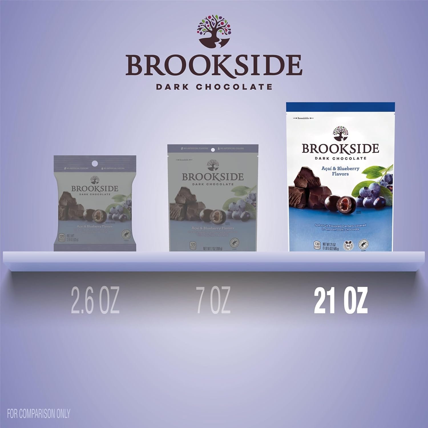 Contains one (1) 21-ounce bag of BROOKSIDE Dark Chocolate with Acai and Blueberry Fruit Flavored Centers Snacking Chocolate