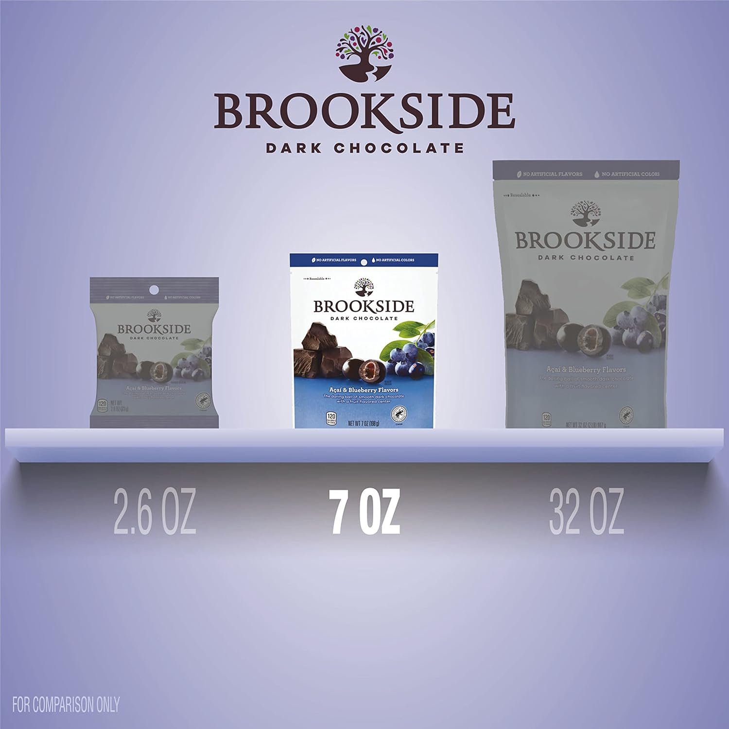 Contains one (1) 7-ounce bag of BROOKSIDE Dark Chocolate with Acai and Blueberry Fruit Flavored Centers Snacking Chocolate