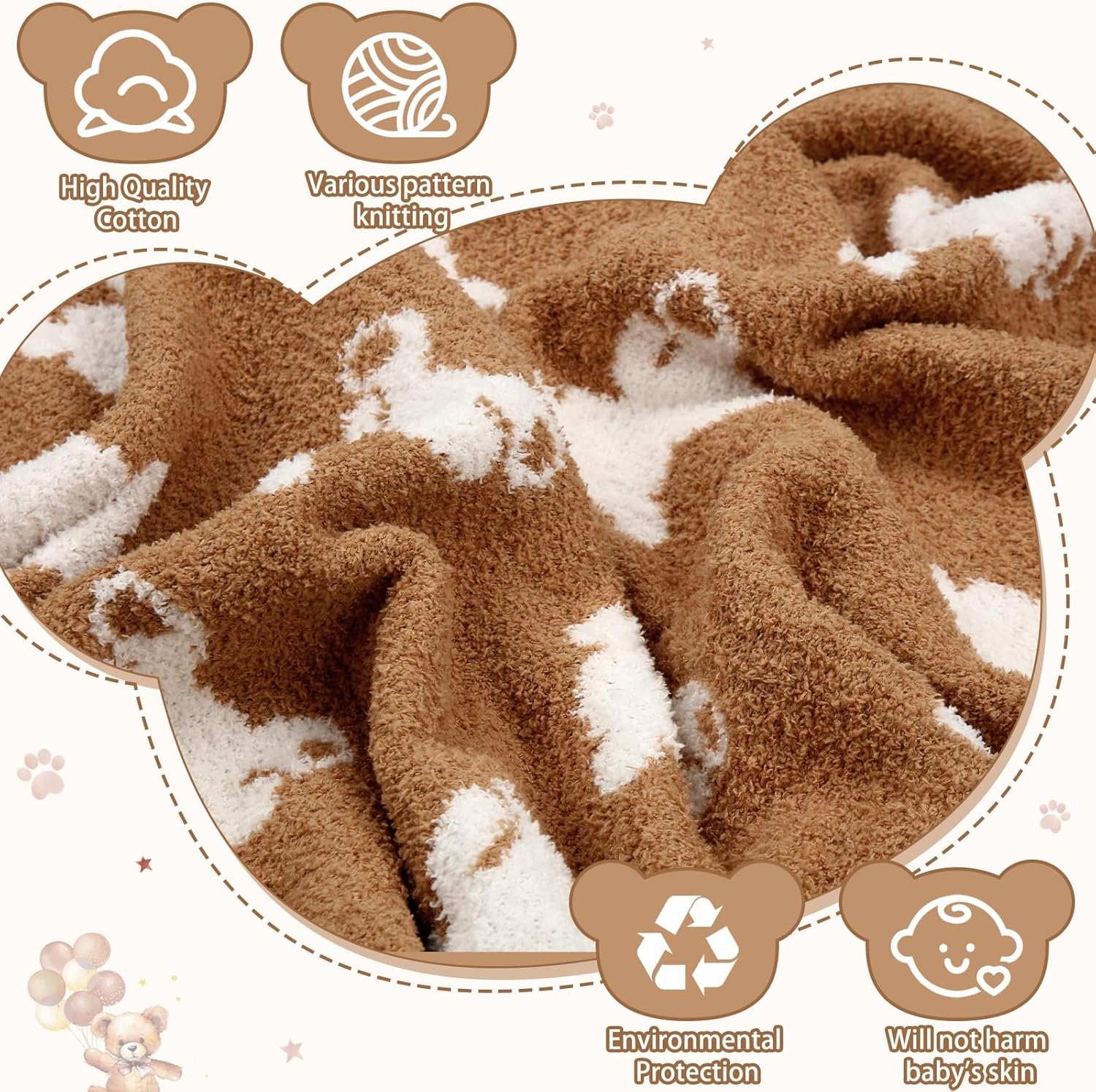 Easy-to-maintain Blankets: our bear blanket is designed to endure regular washes without shrinking, wrinkling; You can easily machine wash it in cold water and dry at low temperatures, ensuring it remains soft and vibrant in colour for long