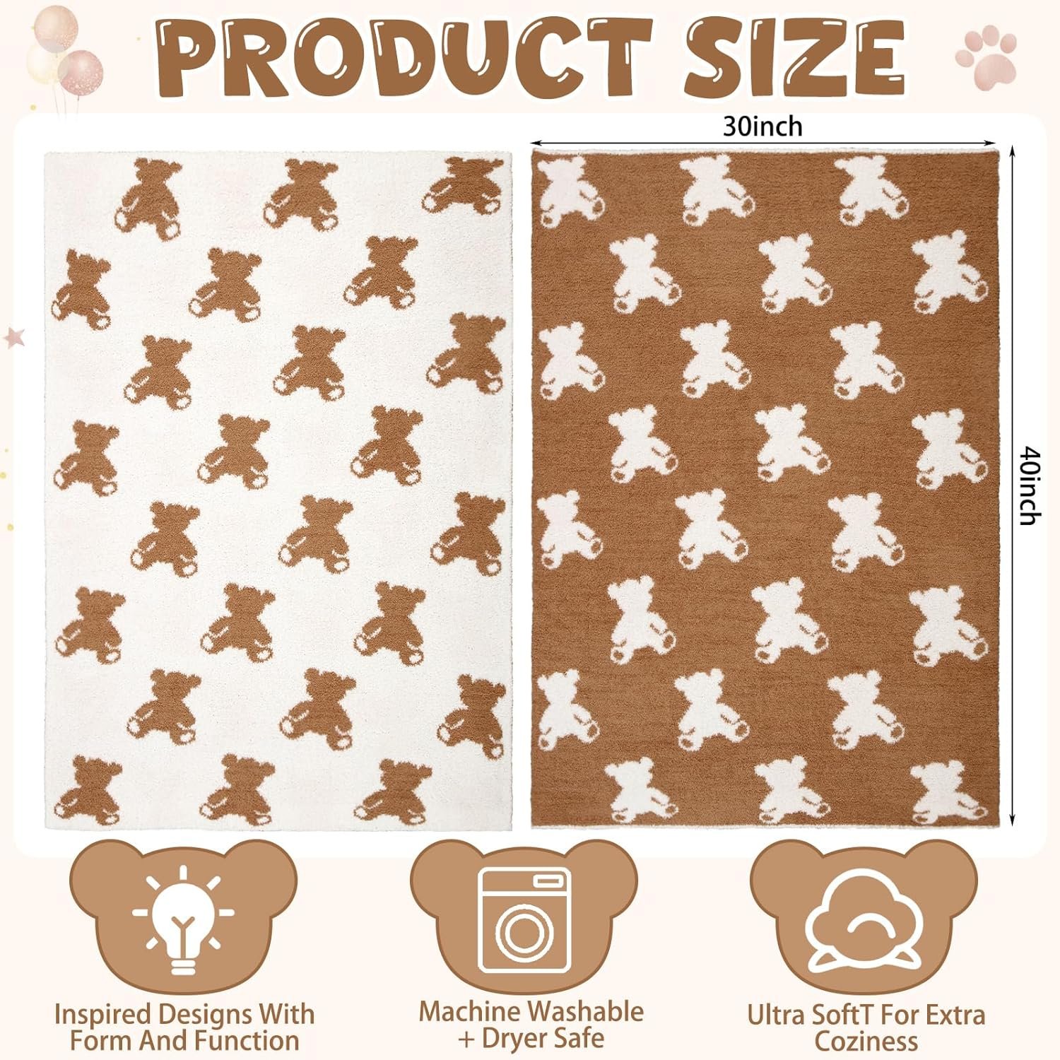 Suitable Size: the size of our preppy blanket is 30×40 feet, the blanket is suitable size for watching TV or taking a nap, it will provide nice coverage to your body; Its right size and delicate bear design make it a cute bear blanket for women, while ensuring optimal warmth and relaxation