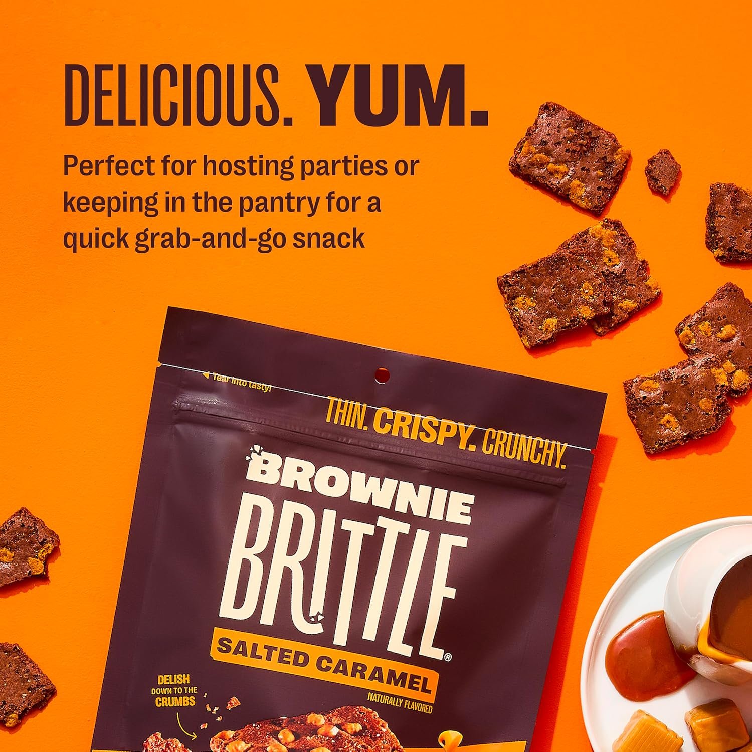 BROWNIE BRITTLE VARIETY PACK – Brownie Brittle is the original crunchy brownie snack with a rich chocolate brownie flavor & crispy crunch just like the edges of the brownie pan; this pack features Original Chocolate Chip & Salted Caramel Brownie Brittle