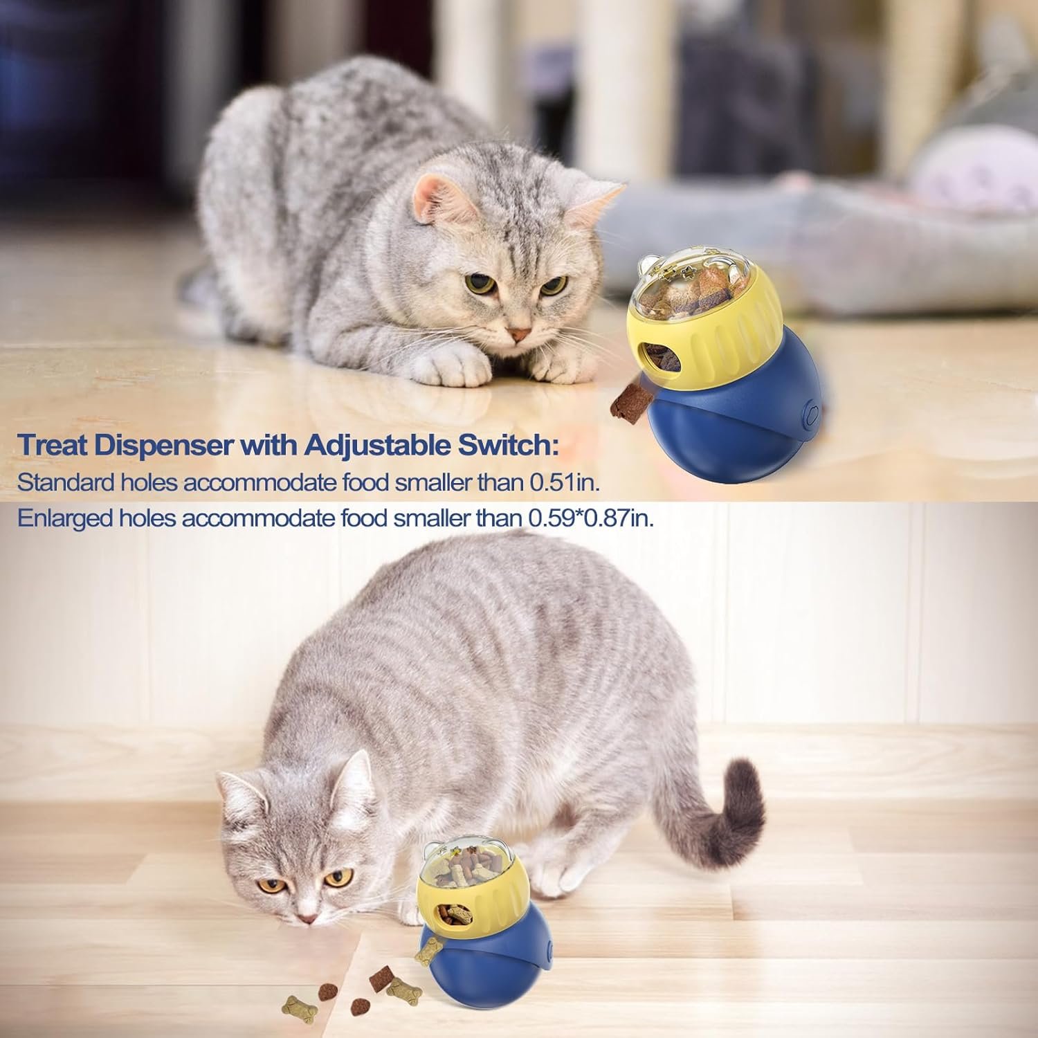 Enrichment Wobble Tumbler Toy: Stays upright & boredom buster! The weighted ball on the base keeps the cat food puzzle ball standing and your cats can’t knock it over no matter how hard they try. Through Interactive playing to stimulate cat’s mind and body, provide entertainment and increase interaction with us.