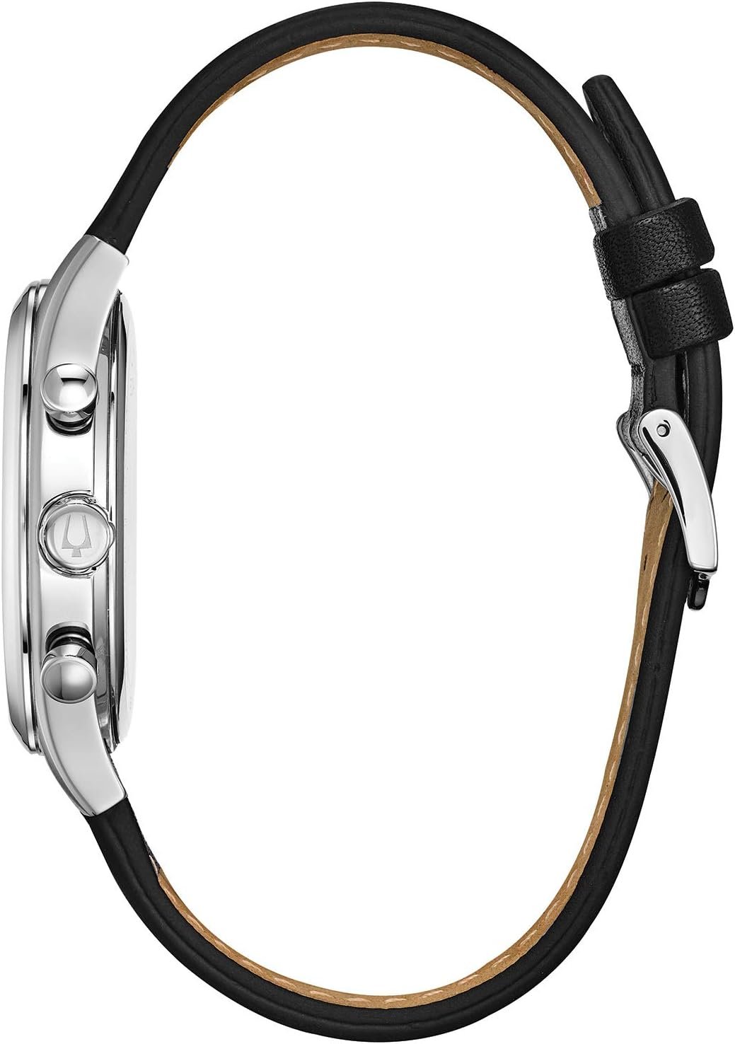 Model Number 96B302 Collection Classic Clasp Type 3-Piece Buckle Dial Color Gray Technology Quartz: 6 Hand, Chronograph, Calendar, 24 Hour Time Water Resistance 30M Crystal Material Mineral Crystal Band Material Leather Strap Band Color Black Case Diameter 41 millimeters Case Color Silver Tone Case Material Stainless Steel Dial Accent Gold-Tone Accents with Arabic Markers