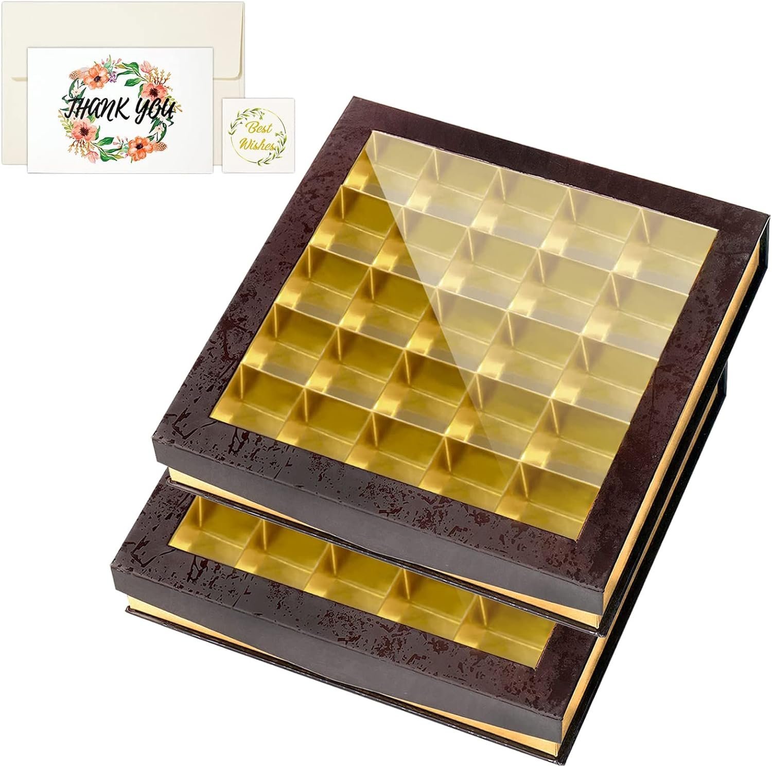 【25 Dividers】Chocolate boxes packaging have 25 grids tray to hold and protect your beautifully decorated chocolate. Perfect size enough to hold different treats, such as chocolate, candy, mini cake, mini cookies and more.
