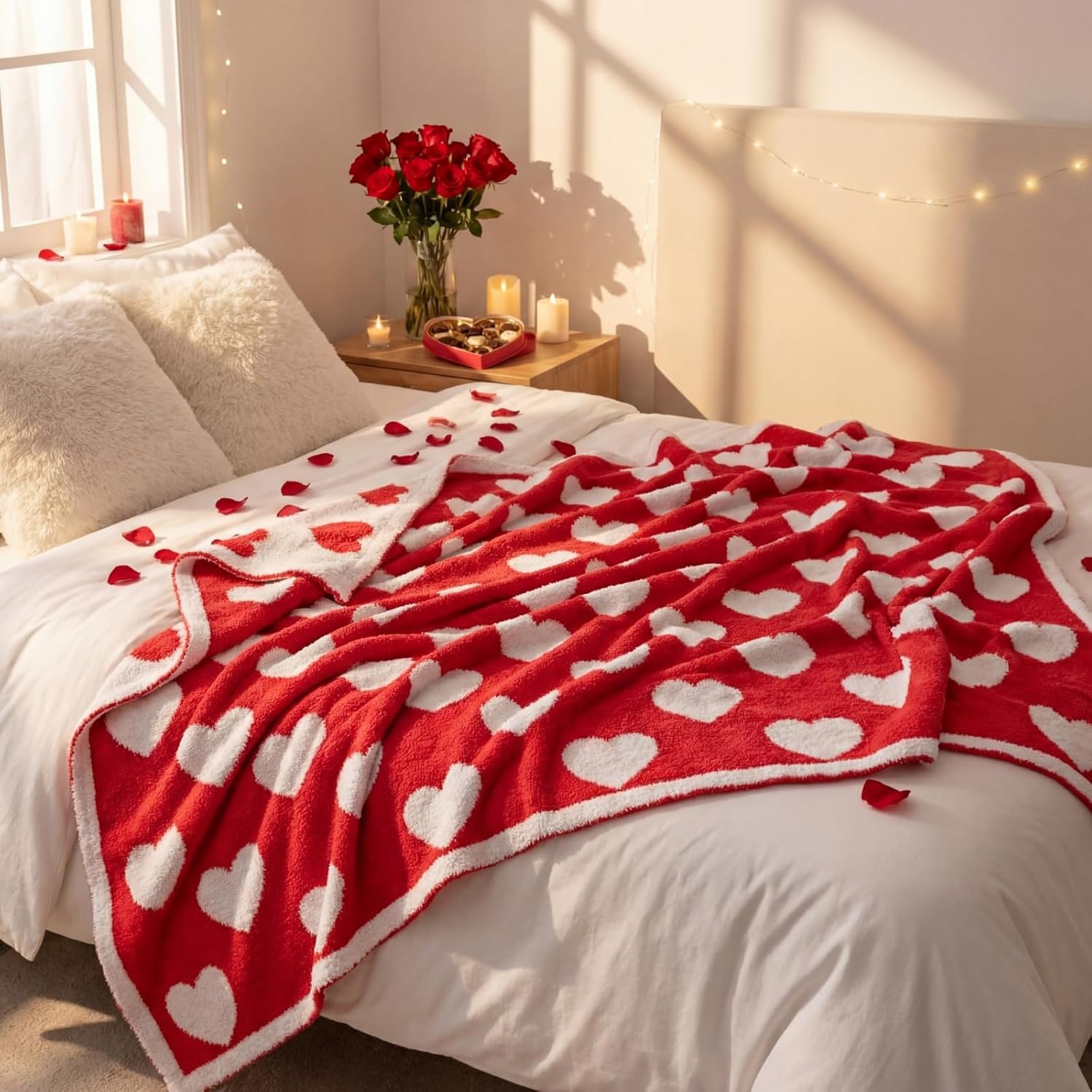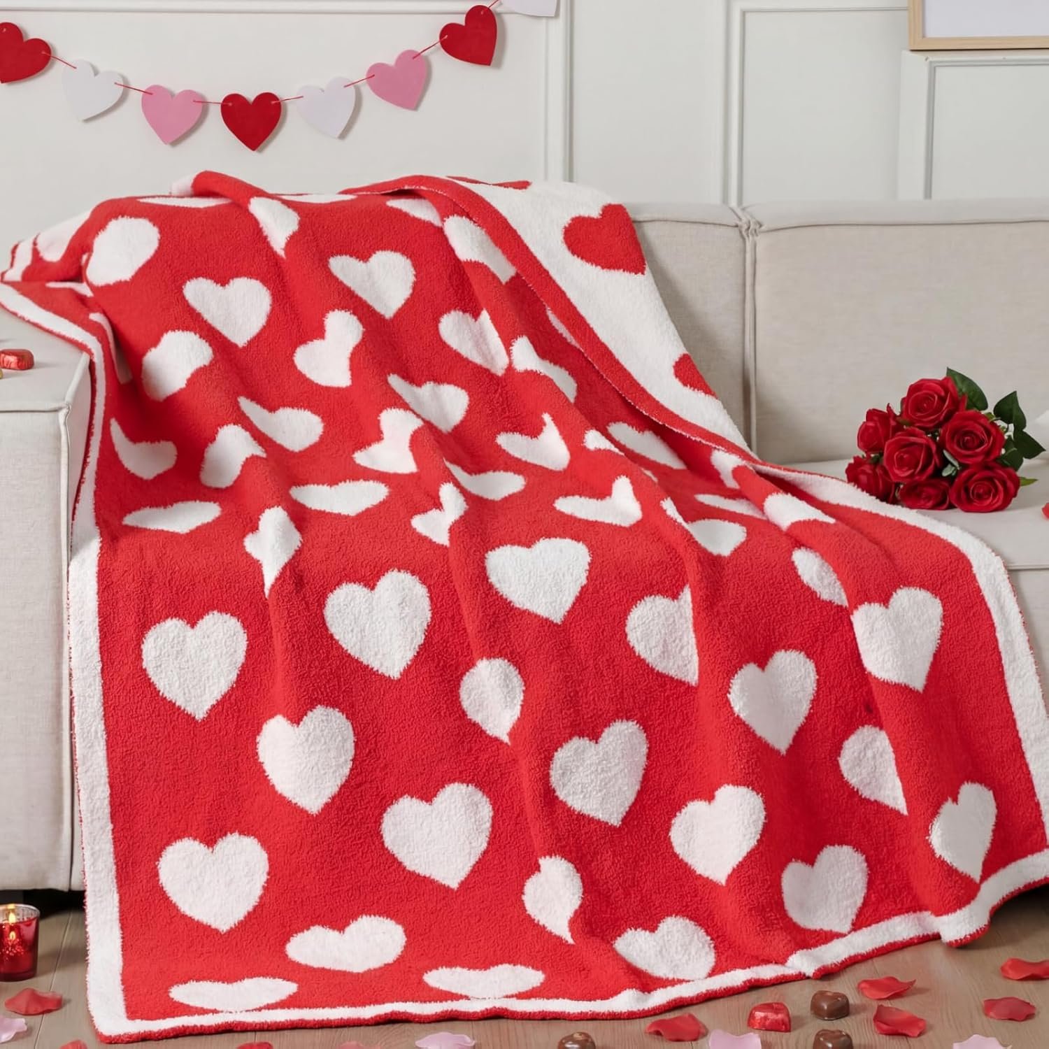 Soft Blanket: our Red hearts throw blanket is made of soft and comfortable microfiber fabric, luxurious and fluffy, giving you a cloud like experience; Strong can not fade, whether you rest on the sofa or watch TV will bring you an incomparable sense of comfort and relaxation