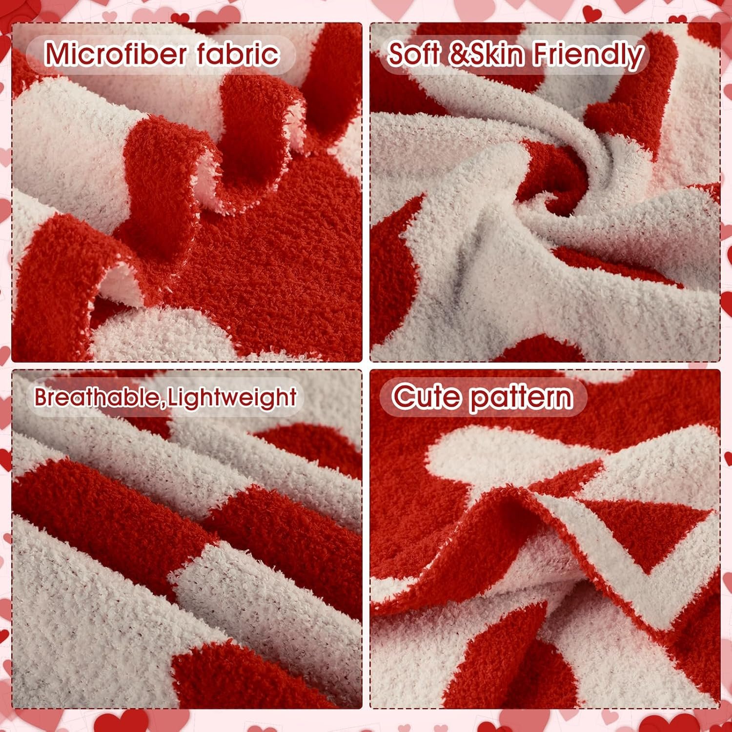 Exquisite and Lovely Design: this microfiber throw blanket is made of soft and thick yarn using knitting technology, compared with traditional blankets, it is more comfortable, warm and skin friendly, it is using a double-sided design, One side is a red heart with a beige background, and the other side is a beige heart with a red background, exquisite and stylish design brings you a different experience