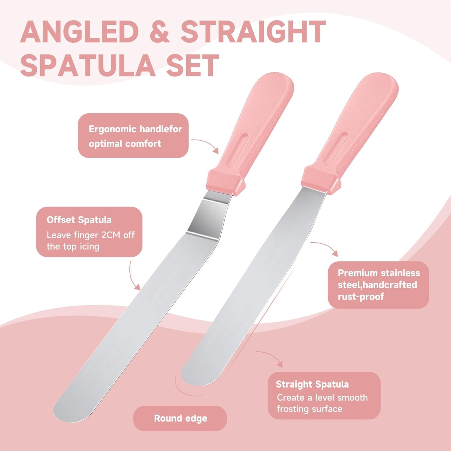 CAKE DECORATING TOOLS :Our cake set includes scrapers, nozzles, a syringe & cake cutter, flower nails, flower lifter, straight brush, disposable bags & many more Must-Have items you’ll love learning to perfect & master. Share the frosting flower fun with friends & family