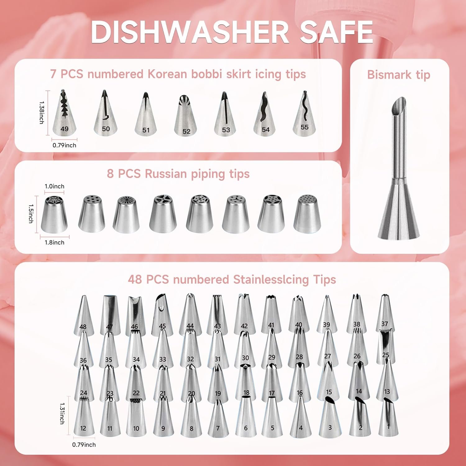 CAKE DECORATING ACCESSORIES :Whether it is lettering or frosting swirls when you are decorating cupcakes, pies, desserts & pastries; these fondant tools lets you decorate your tasty treats with ease,NUMBERED TIPS: We have selected top 63 tips including Round Tips, Leaf Tips, Petal Tips, French Tips, Basket Weave tips, open Star Tips close Star Tips, Drop Flower tips, use carefully selected stainless steel of 304 grade, Stainless steel tips with a handy re-usable storage case