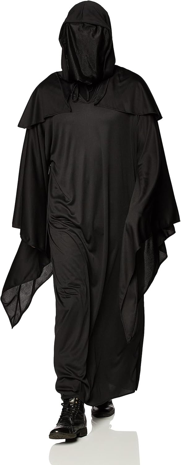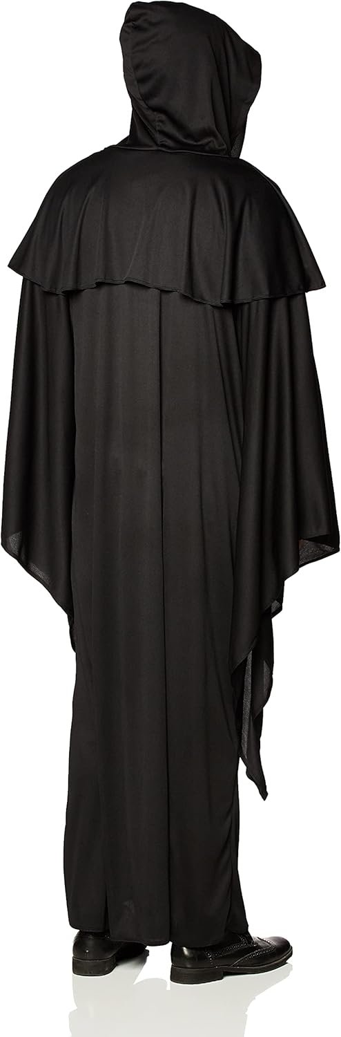 Customers find this grim reaper costume to be of excellent quality, with a perfect fit that’s particularly suitable for tall adults. The face coverage is effective, with a blackout mask that hides the face perfectly, and they appreciate its value for the price. The costume works well for various uses, including hair metal Death costumes, and customers find it comfortable, with the face mask being attached with Velcro. They like its appearance, with one customer describing it as a mythical-looking robe.