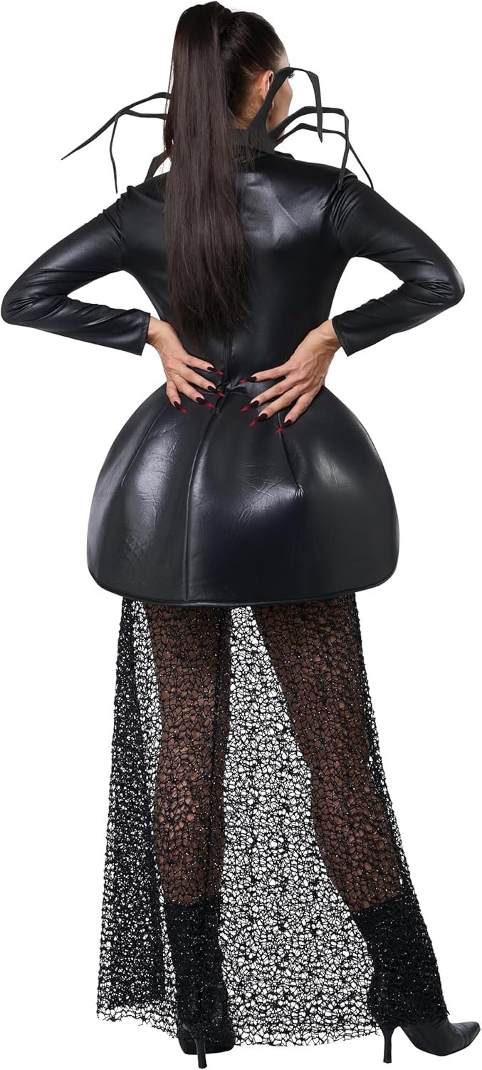 The Web of Deceit serves as a sexier Women’s Spider costume. The costume features a dress inspired by the shape and body of a black widow and also includes a collar that represents the long legs of a black widow. The costume also includes hot pants and a long mesh skirt to finish of the lower half of the costume. The costume can be wore with or without the skirt.