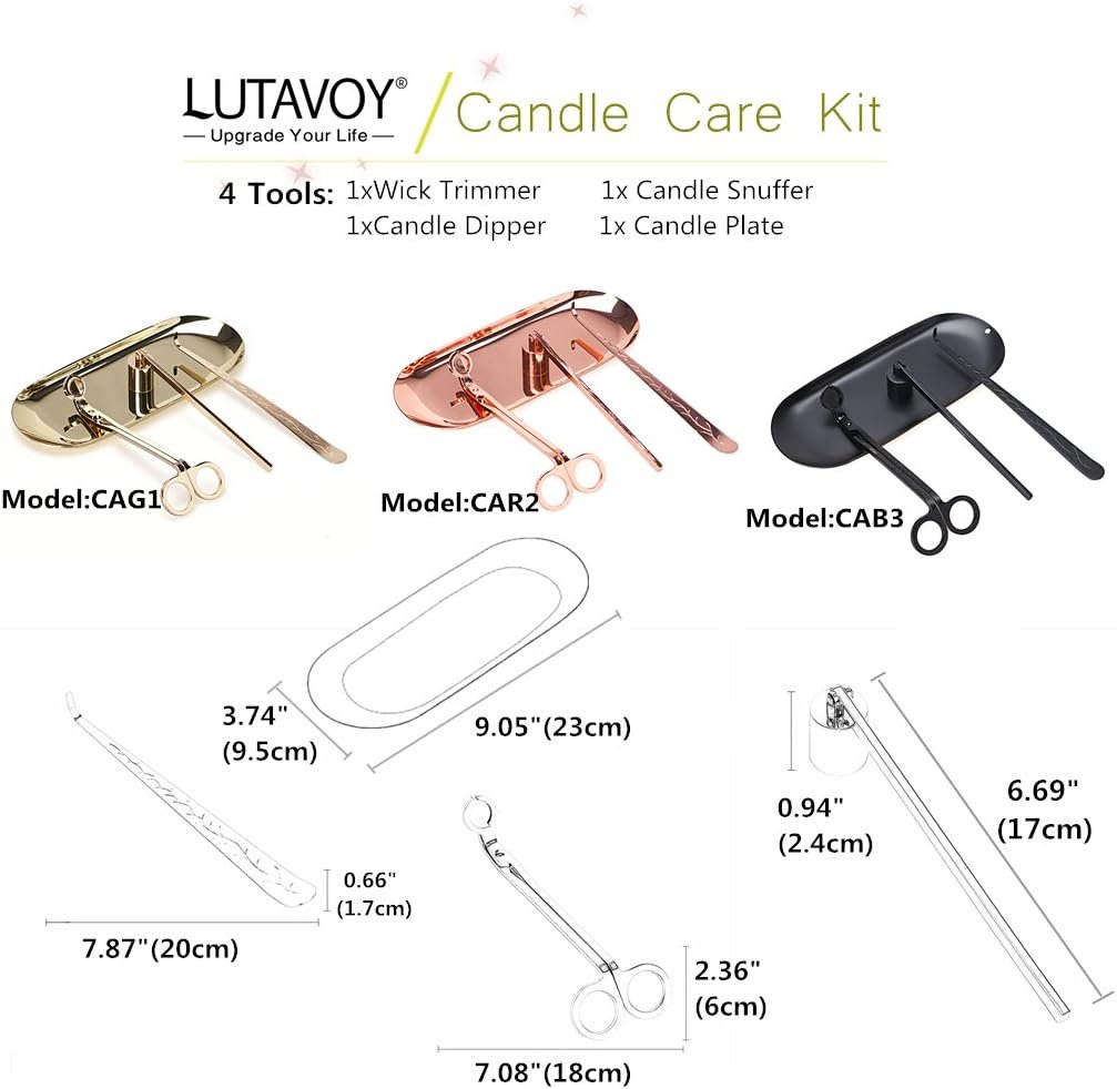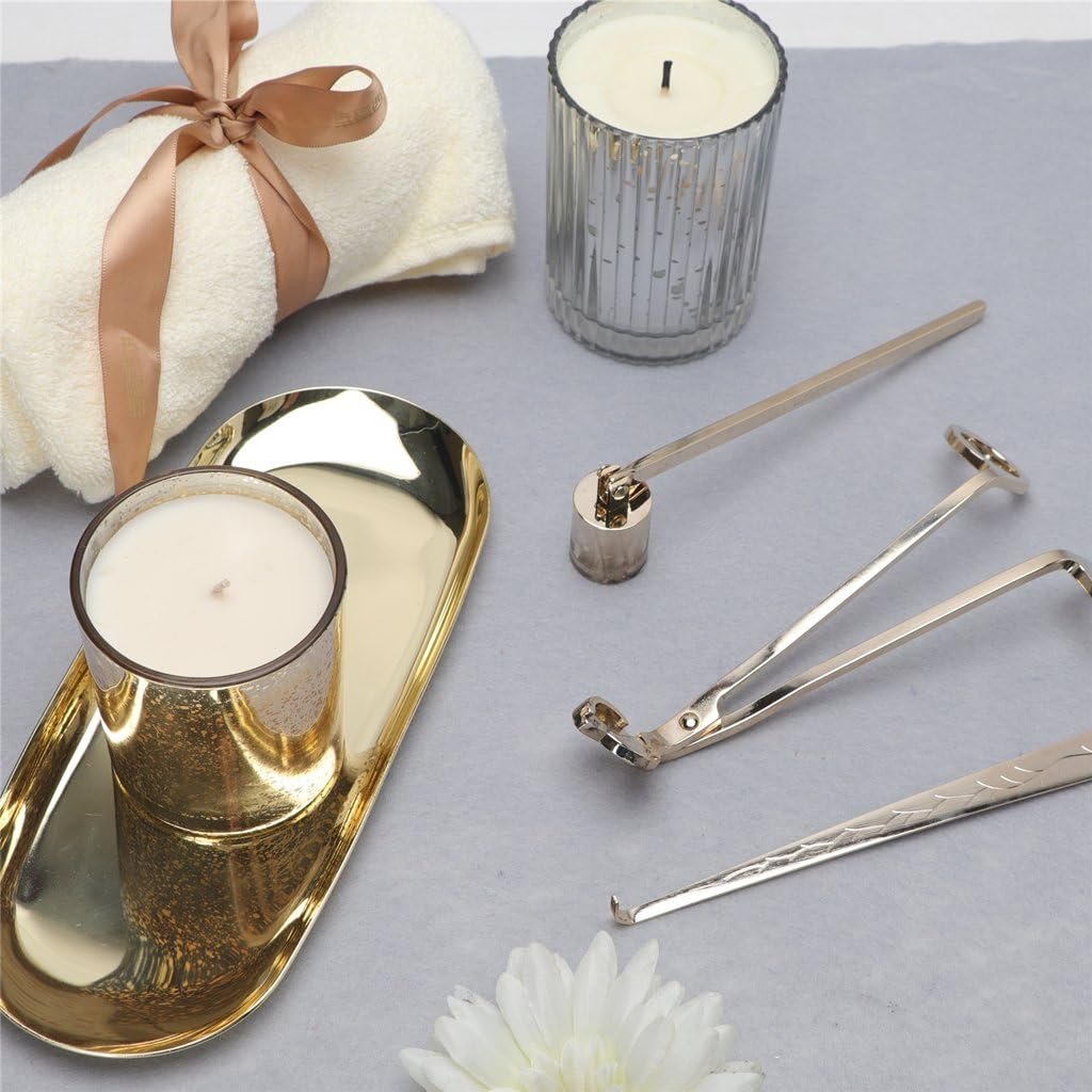 4 Pieces Candle Tools – LUTAVOY CAG1 Gold Candle Care Kit: including Candle Wick Trimmer, Candle Wick Dipper, Candle Snuffer and a Storage Tray.With premium mirror finish,this model would definitely compliment any decor
