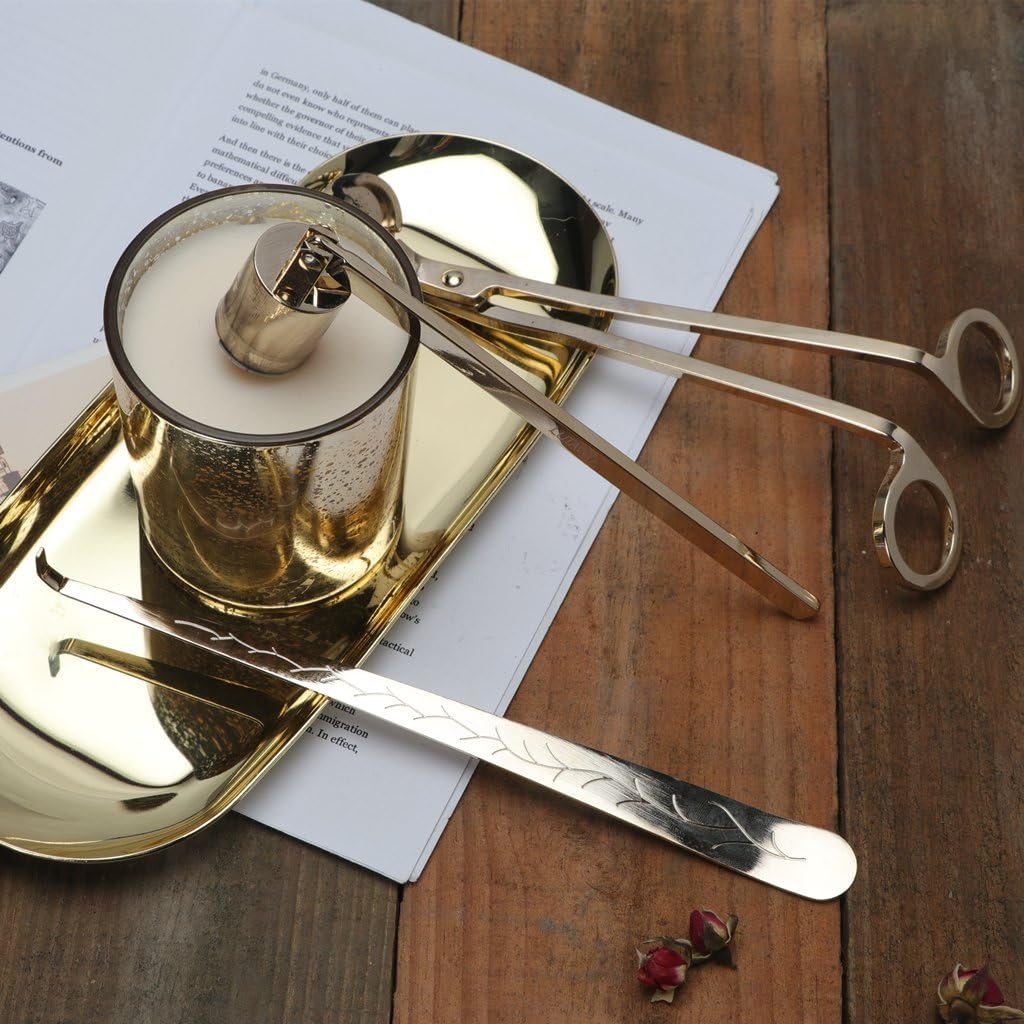 Candle Wick Trimmer Candle snuffer Wick Dipper Candle Plate Candle Care Kit House Warming Gift(CAG1 – Gold)