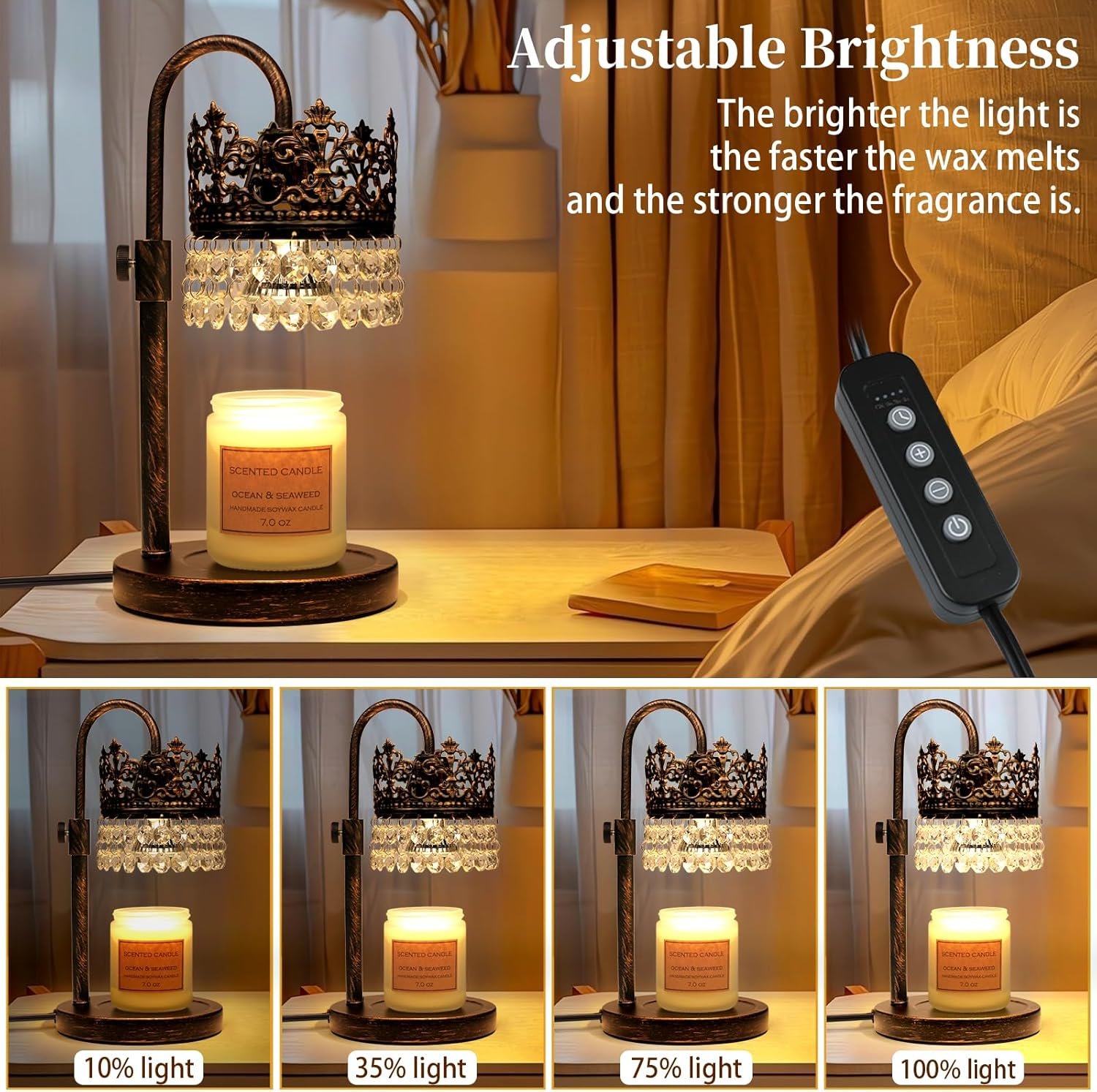 Auto-Shutoff Timer for Peace of Mind:1H/2H/4H intelligent timer with soft-click settings prevents overheating. Ideal for halloween candle warmer lamp black candle warmer lamp wax melt lamp gothic candle warmer yeuslor gold candle warmer lamp halogen lamp crystal candle warmer GU10 bulb lamp Crown moonshade candle lamp vintage candle warmer Valentine’s Day gifts for him unattended use—whether you’re sleeping, working, or traveling.Not only convenient, but also ensure safety and cost-effectiveness