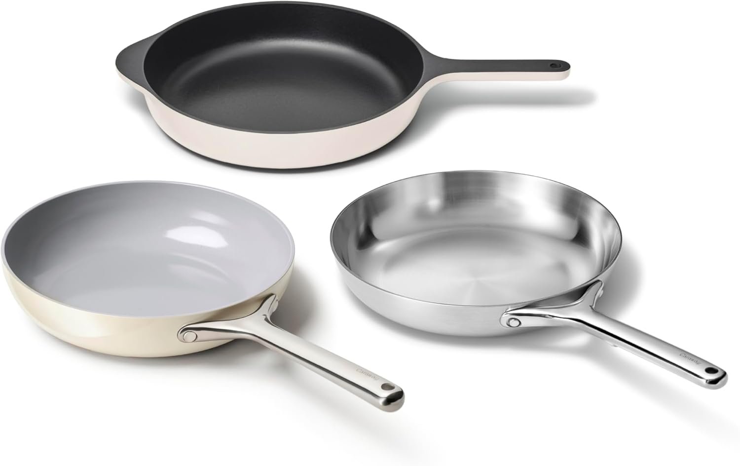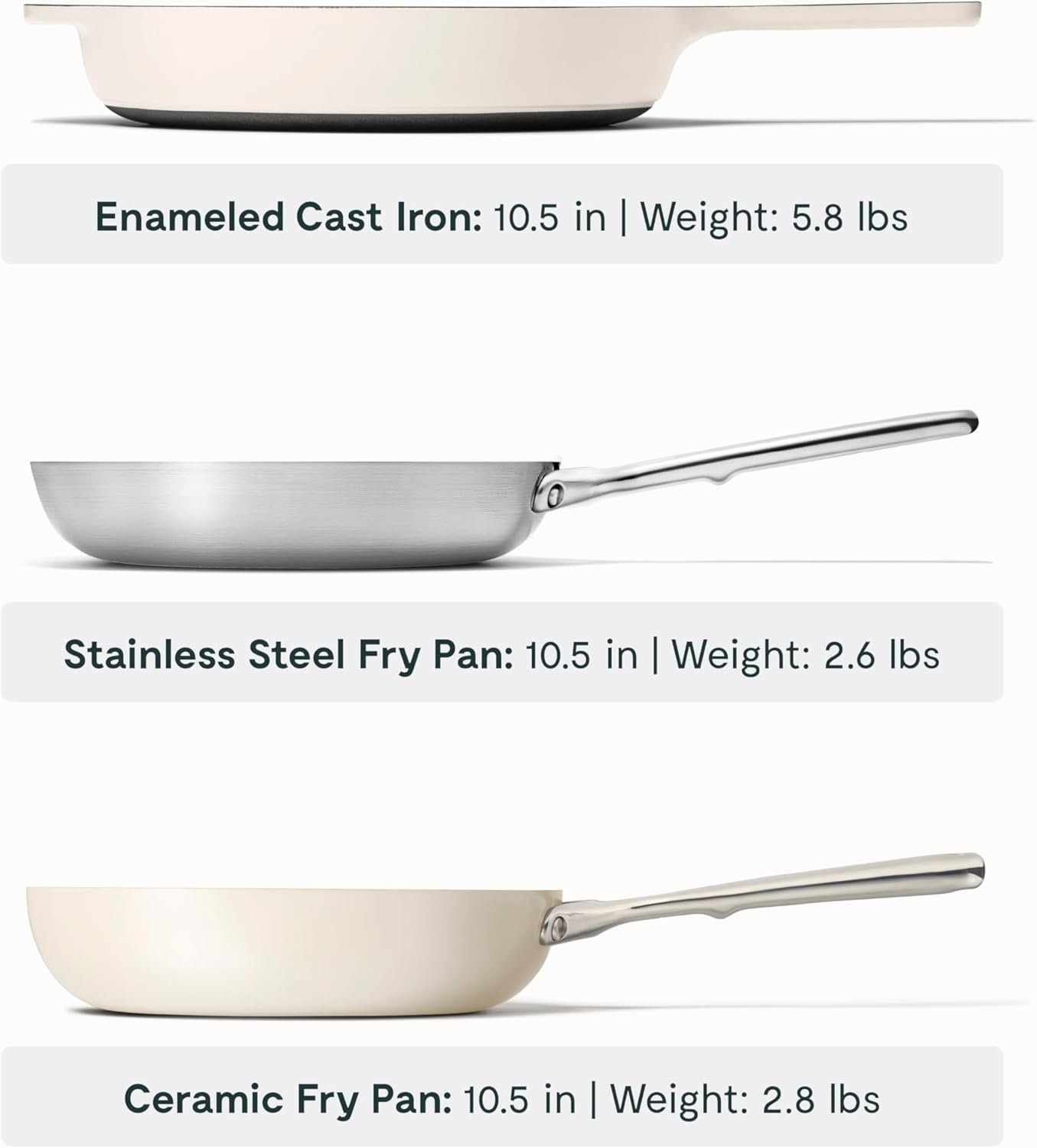 KITCHEN COOKWARE SET: This trio includes a 10.5″ non stick ceramic frying pan, 10.5″ stainless steel frying pan, and 10.5″ enameled cast-iron skillet—each designed for versatility, performance, and everyday use.
