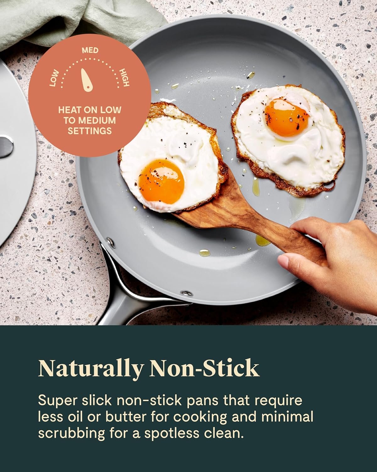OVEN AND STOVETOP COMPATIBLE: All three pans are safe for gas, electric, and induction cooktops and oven safe up to 500°F, making this non toxic cookware bundle a versatile choice for ceramic nonstick pans and cast iron skillets.