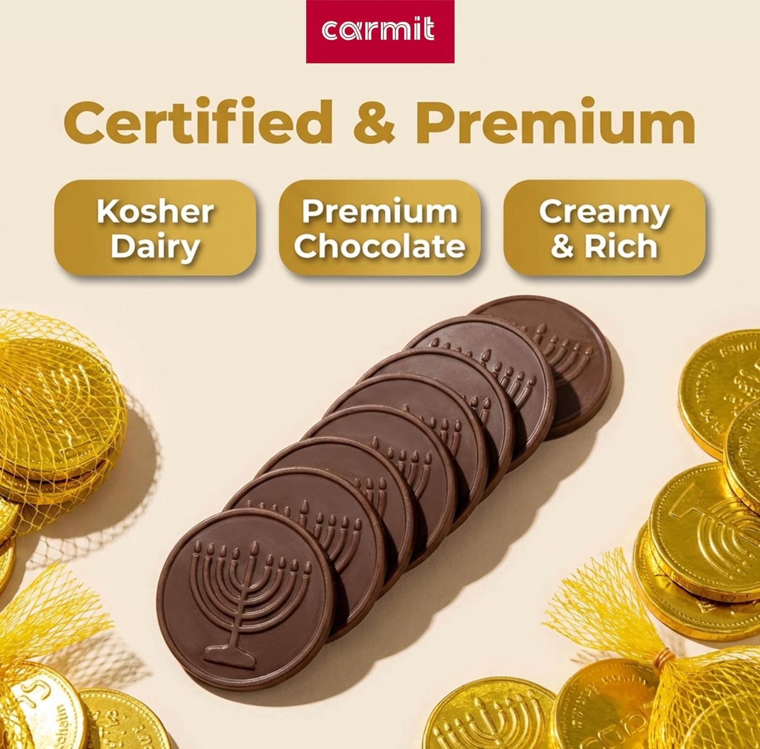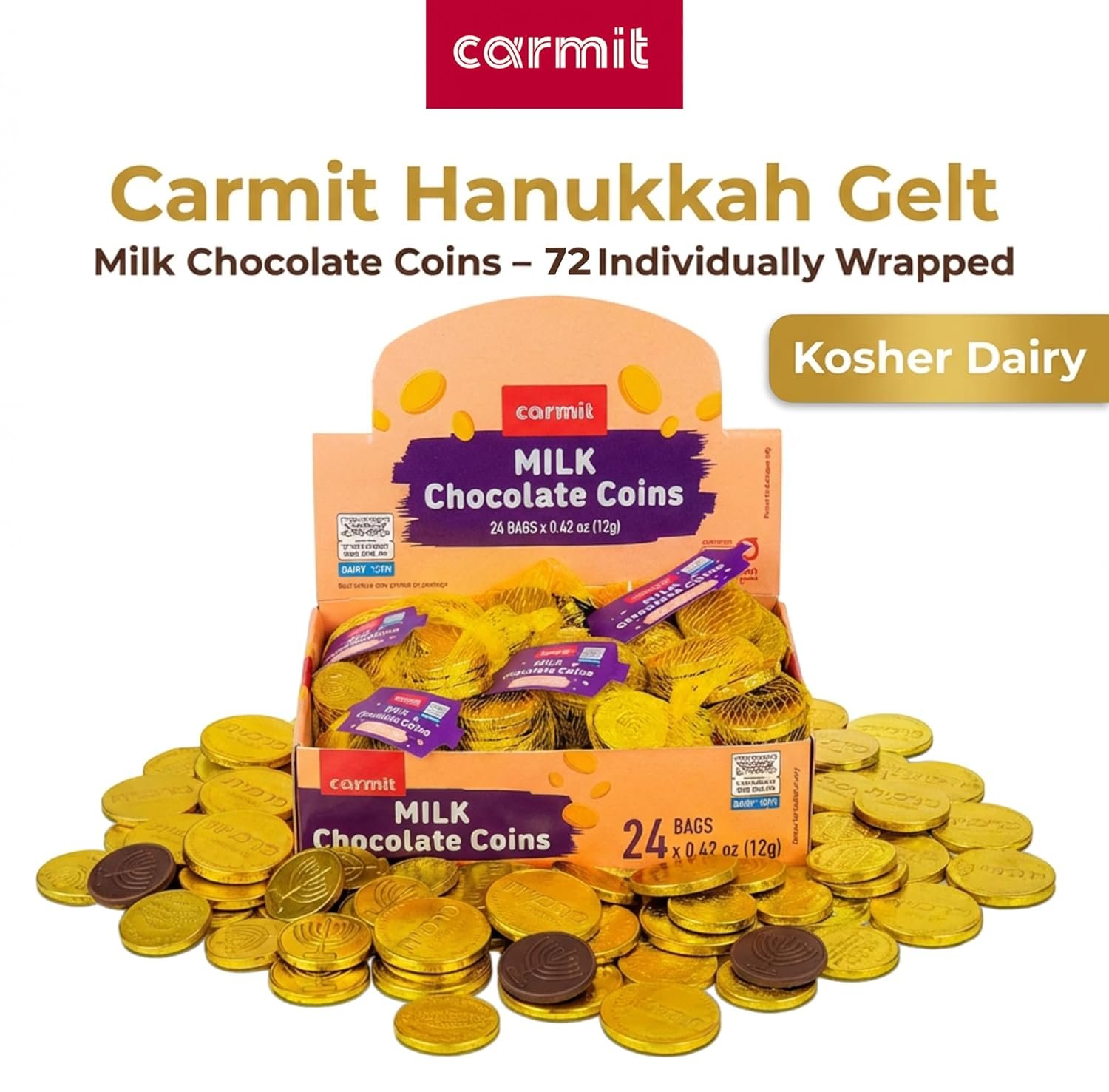 CHOCOLATE GELT: Rich and creamy milk chocolate coins crafted by the trusted Carmit brand. The perfect, authentic Hanukkah gelt for all ages and essential holiday candy.