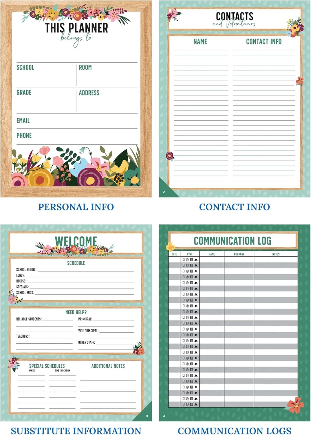 Goal-Setting Lesson Plan Book: Use the comprehensive informational section in the lesson planner to record substitute information, log communication, store contact information, create year-long plans and goals, and more.