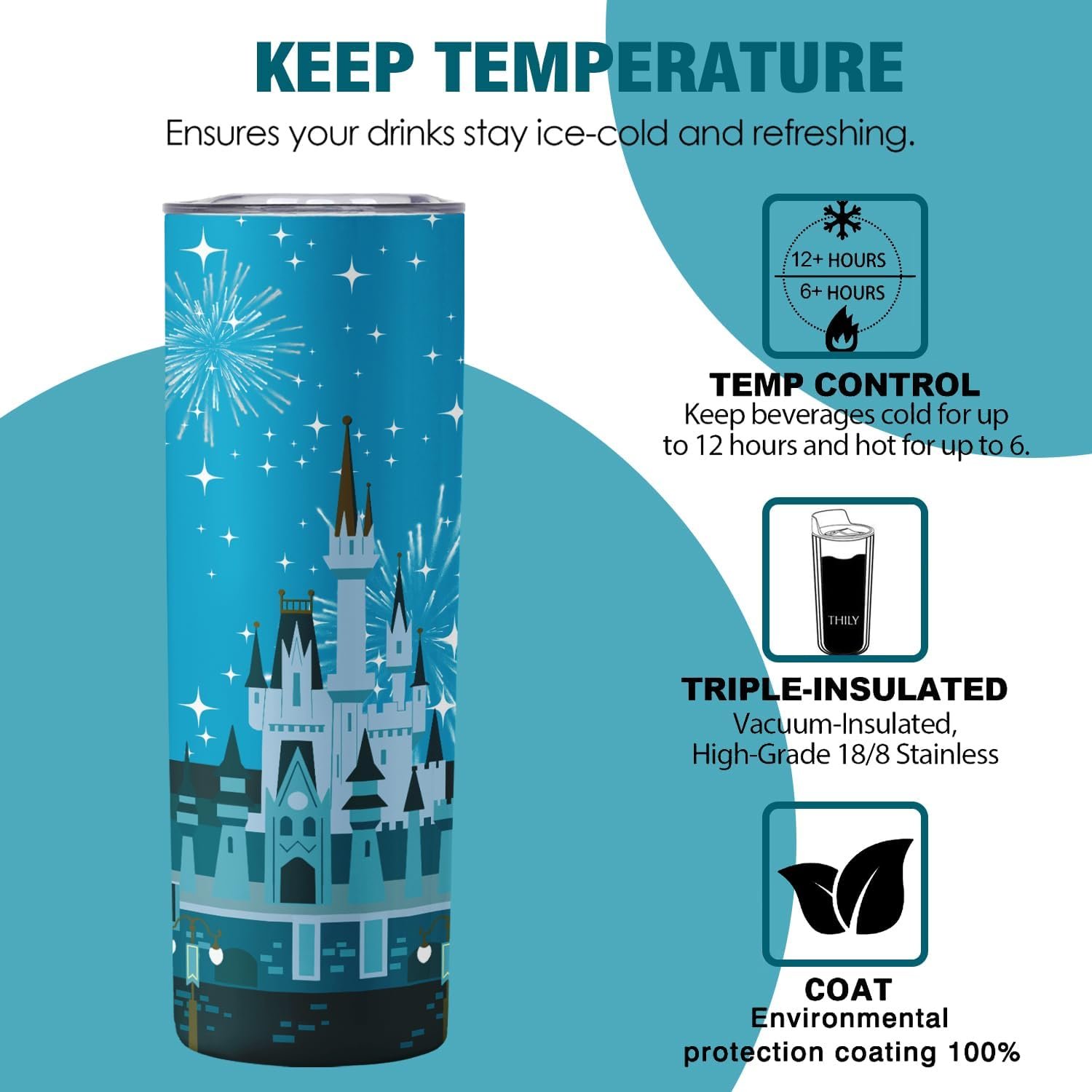 Double Wall Vacuum Insulation: Cartoon skinny tumbler Keep your beverage at the ideal temperature, hot for 4+ hours and cold for 10+, will not break, sweat-proof, resistant to cold and heat, humanized design, the lid of the cup is equipped with a thick rubber sealing ring, which is splash-proof, leak-proof, sealed and reusable