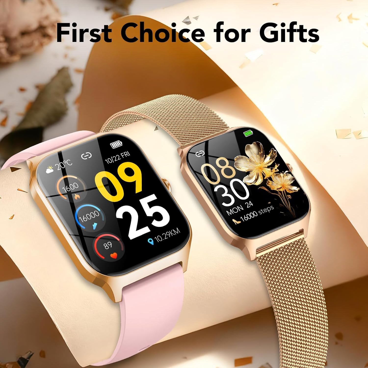 【Fashion Smartwatch】This smart watches for women features a gold-tone metal bezel and a 1.85-inch high-definition, highly responsive touchscreen, presenting an overall elegant and stylish design. The womens watch comes with two straps (1 metal strap + 1 silicone strap), effortlessly adapting to work, sports, and various occasions. Furthermore, over 200 watch face styles are available, with support for custom photo watch faces, allowing you to personalise your unique timepiece.